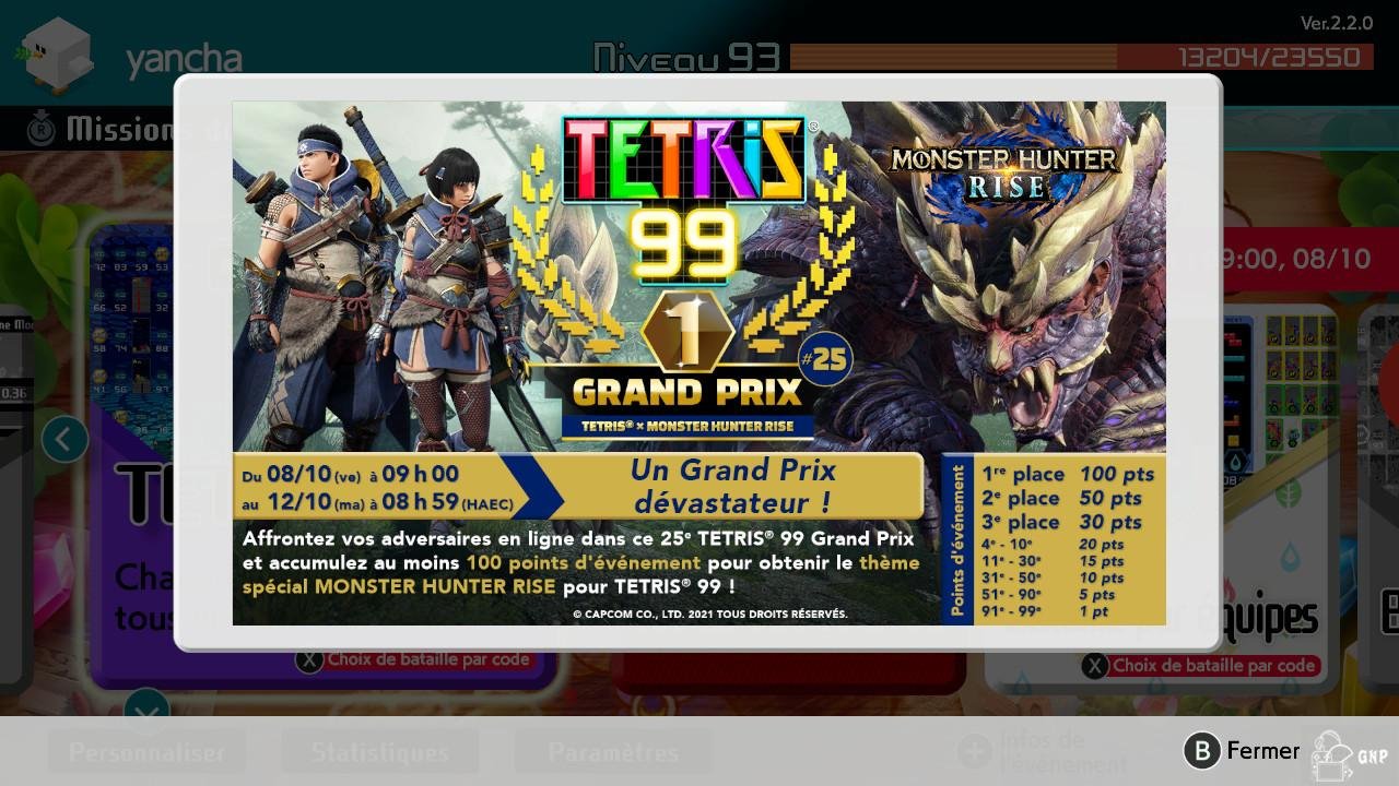 Si vous voulez en savoir encore plus sur Tetris 99, rendez-vous sur le site de Nintendo à cette adresse. On a hâte de savoir combien de partie il vous faudra pour récupérer le thème de Monster Hunter Rise. Pour ma part, deux essais auront suffit. Dites-nous tout dans les commentaires ci-dessous ou sur les réseaux sociaux : Facebook et Twitter