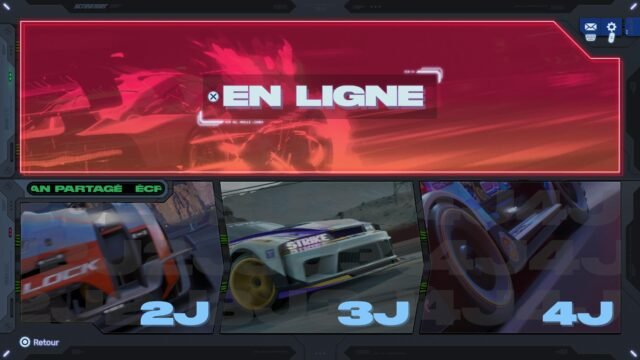 Bien évidemment, si l’on peut jouer en mode local, le titre propose également de jouer en ligne pour affronter d’autres pilotes à distance.