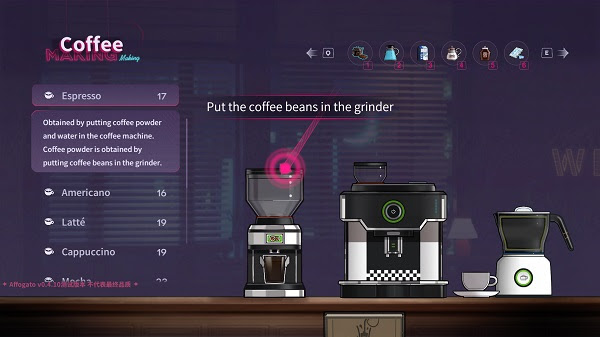 Faire une bonne tasse de thé est la base du métier de barista. Cependant, pour être un vrai bon barista, vous devez peser les mots d’un client et déterminer quelle infusion est parfaite pour lui. Apportez un sourire avec chaque tasse que vous préparez ! Affogato propose une simulation réaliste de la fabrication du café dans laquelle vous devrez vous familiariser avec le fonctionnement de divers équipements pour préparer votre infusion. Différents saveurs et mélanges auront des effets sur le dialogue du scénario.