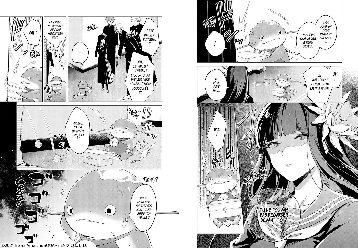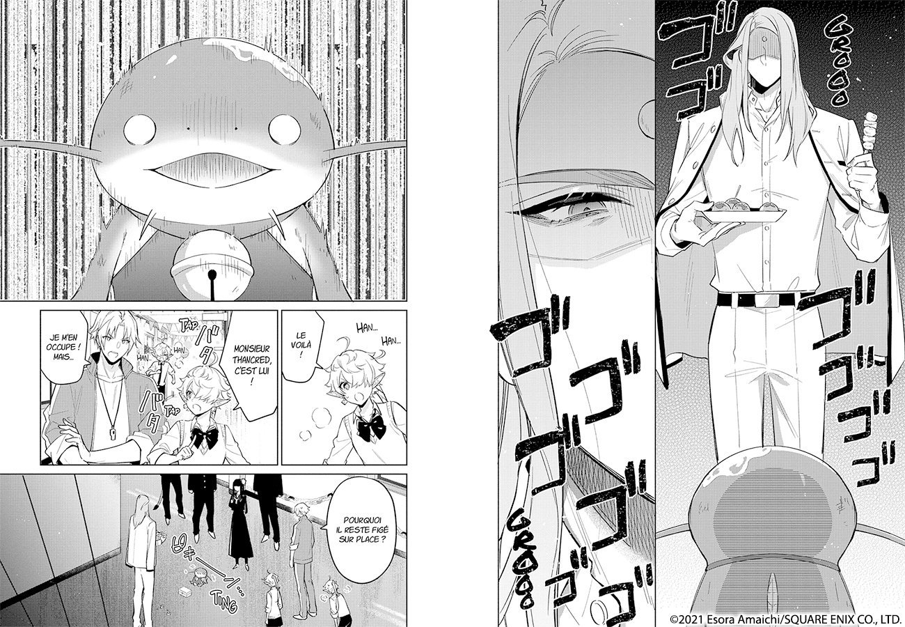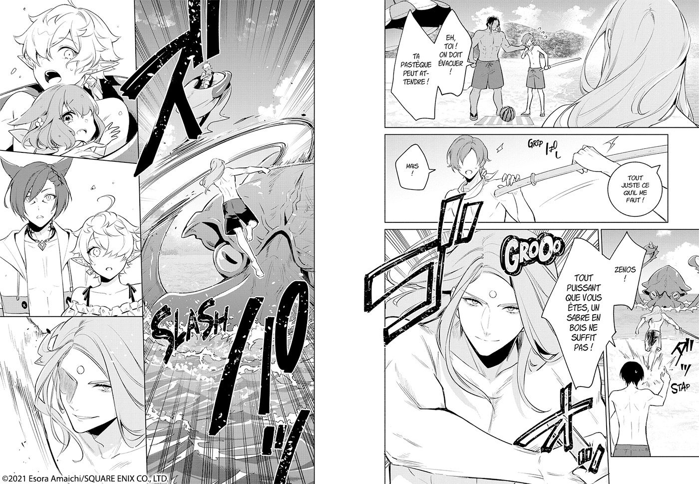 En dehors de cela, il est bon de noter la performance d’Esora Amaichi, qui livre des illustrations d’une grande qualité avec des clins d’œil visuels à l’univers du jeu, ce qui ne laissera pas insensibles les fans. Le tout est parfaitement orchestré, et on adore découvrir les élèves en uniformes dans des décors scolaires, académiques vori sportives.  On apprécie également le soin apporté aux expressions parfois exagérées, qui permettent de mettre en scène différents personnages dans des situations comiques ou surprenantes. Vous l’avez compris, le tout est travaillé avec soin, rendant chaque page agréable à regarder. D’ailleurs, les plus grands fans de la licence apprécieront les détails et références à l’univers de Final Fantasy XIV. Mais pour cela, il faudra avoir l’œil aiguisé.