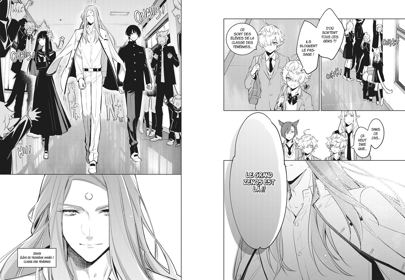 Contrairement aux attentes habituelles de la franchise Final Fantasy, souvent marquée par des quêtes épiques et des récits grandioses, ce manga prend le contre-pied en nous transportant dans un cadre scolaire. L’histoire se déroule à l’Académie Éorzéa, une école prestigieuse née de la fusion entre l’Académie de la Lumière et l’Académie des Ténèbres.
