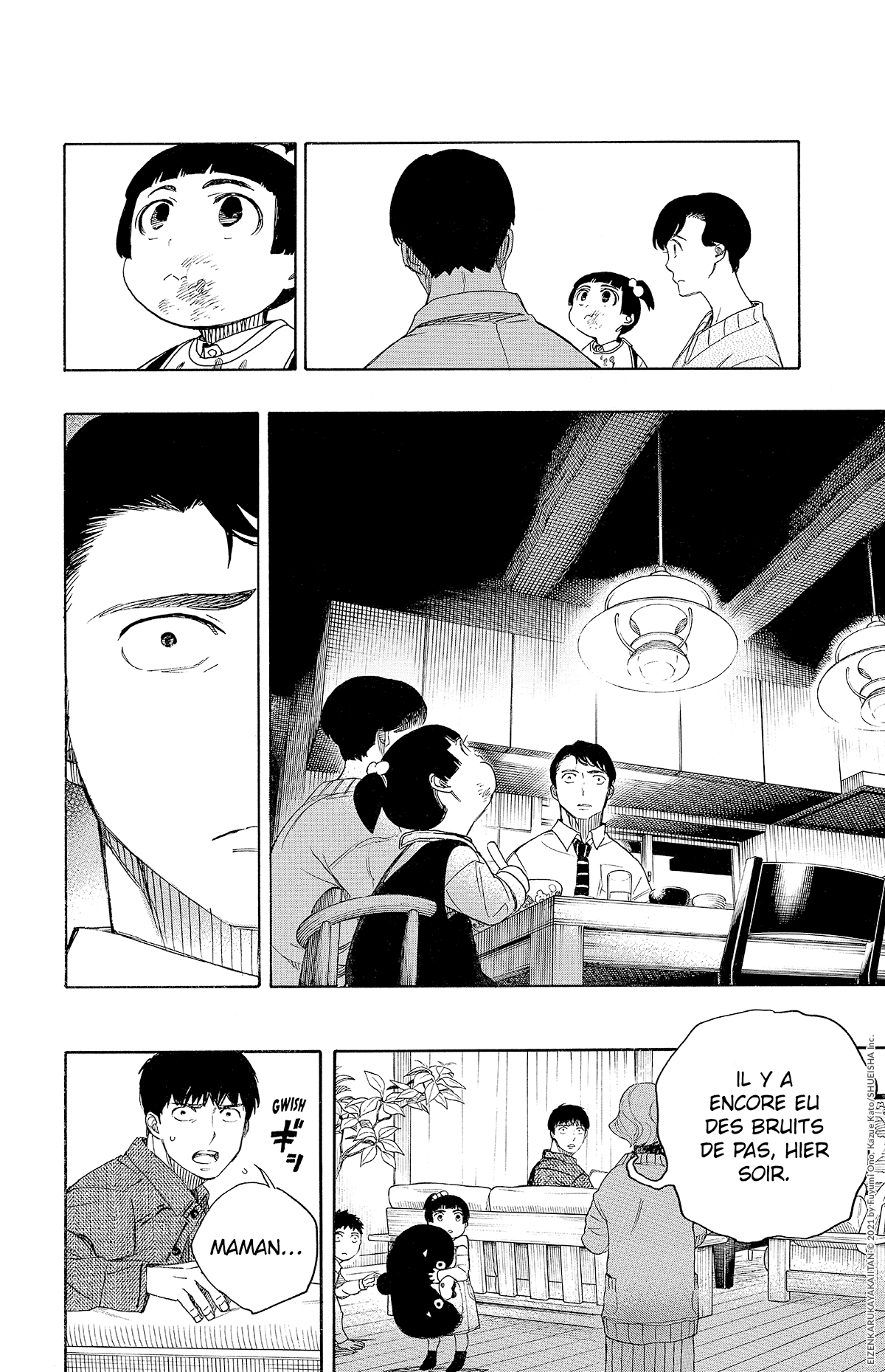 Le surnaturel s’intègre harmonieusement sans jamais sombrer dans le gore. Les dessins de Kazue Katô contribuent à atténuer l’aspect terrifiant, offrant une représentation plus humaine des esprits qui hantent les maisons. Ces esprits, autrefois habitants des lieux, conservent leur humanité malgré la perte de leur corps, ce qui rend le récit d’autant plus poignant.