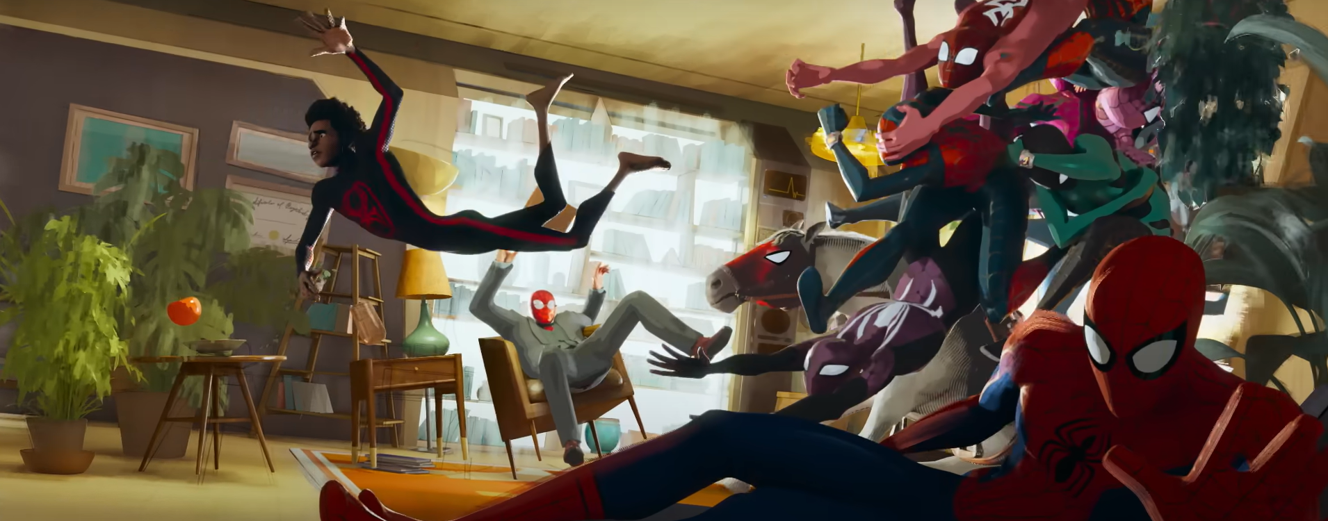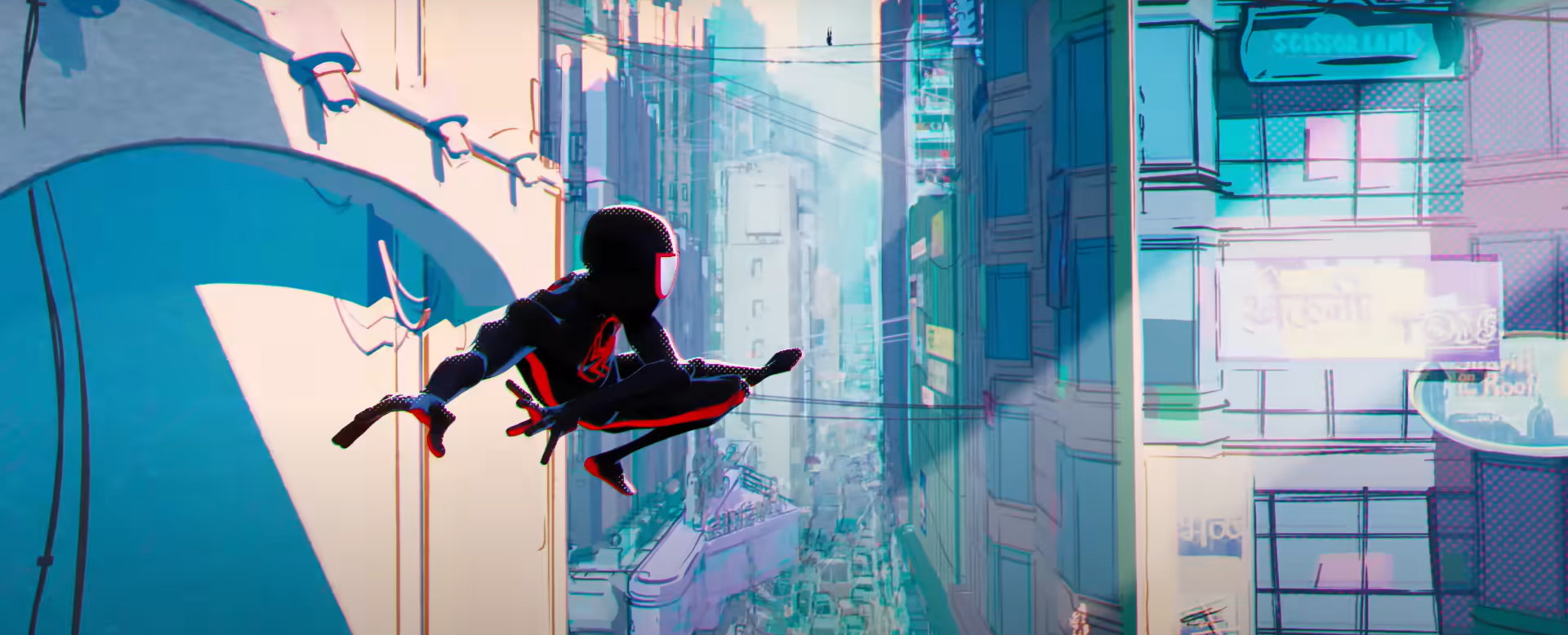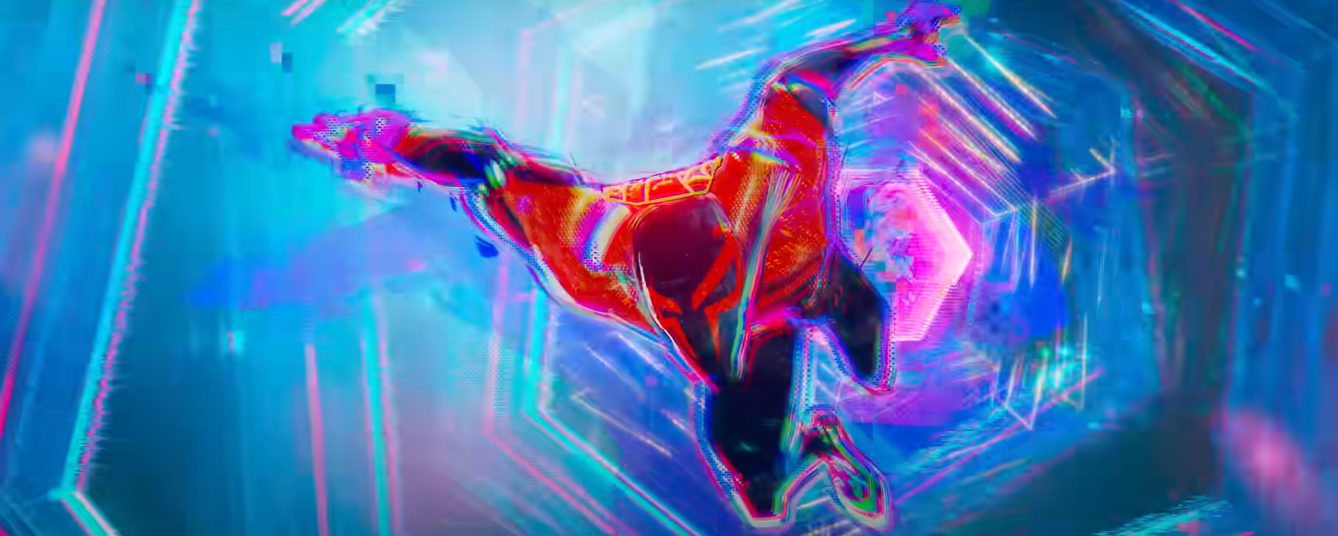 Ce n’est plus un secret pour personne, mais Spider-Man: Into the Spider-Verse avait déjà frappé très fort en repoussant une première fois les limites de l’animation. Eh bien, Spider-Man: Across the Spider-Verse fait encore mieux. Une fois de plus, Sony Pictures Animation nous propose un long métrage bourré de couleurs et d’effets en tous genres. Par exemple, chaque univers possède sa propre palette de couleurs ainsi qu’un style qui lui est dédié. Du bleu au violet pour Gwen, en passant par des couleurs bien plus chaudes dans Mumbattan (la ville de Spider-India) en plus de la présentation déjantée et hautes en couleurs à laquelle Spider-Punk a eu droit lors de son introduction. Dans le même registre, l’animation permet de créer des rendus sublimes au niveau des portails interdimensionnels, des combats ou encore de la multitude de Spider-Men présents dans le film, comme évoqué précédemment.