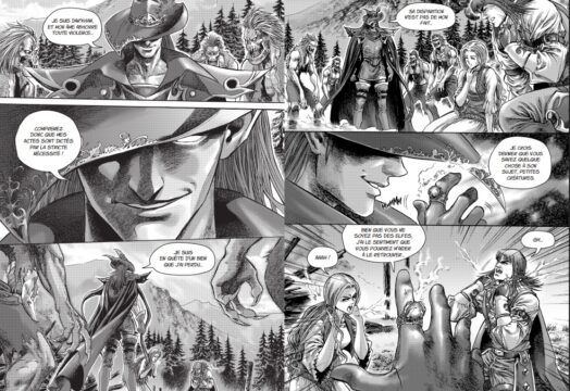 Il faut l’avouer, on en prend plein les yeux tant les illustrations regorgent de détails. Ici, on n’est pas sur des personnages crayonnés à la va-vite avec un décor vide en arrière-plan, c’est tout l’inverse… Chaque personnage a un nombre de détails affolant, chaque bulle présente une multitude de détails que ce soit corporels, sur les armures, les arrière-plans, et bien évidemment les expressions du visage !