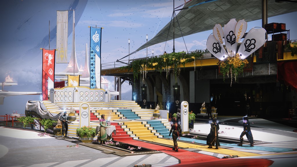 Un peu de style n’est pas de trop. Tess Everis proposera des éléments dignes à afficher sur le podium. Pour les Gardiens qui parviendront à allumer des torches de platine, une chope des Jeux des Gardiens et une médaille des Jeux des Gardiens seront disponibles. Il faudra les acheter depuis les récompenses Bungie. Vous saurez également chaque semaine quelle classe est en tête. Une aura dorée, argentée ou bronze sera attribuée à chaque classe suivant sa place. La grande gagnante sera désignée lors d’une cérémonie marquant la fin des Jeux des Gardiens le 24 Mai. Celle-ci recevra alors un trophée commémoratif, visible à la Tour toute l’année !!