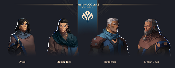 Les Smugglers gèrent leur propre territoire, possédant une force armée et une certaine influence politique. Leurs agents ont le nez dans les affaires de chaque planète, influençant les politiques publiques et le commerce global. Les Smugglers sont des experts lorsqu’il s’agit de se concentrer sur des proies faciles et vulnérables afin d’en tirer le maximum. Sur le champ de bataille, ils mettent du temps à s’échauffer. Leurs unités réduisent l’approvisionnement de leurs cibles durant les combats, et tirent profit des unités affamées, ce qui en fait la meilleure faction pour des longues batailles dans des territoires neutres. Ils sont également très bons pour surprendre les armées revenant d’un combat acharné.