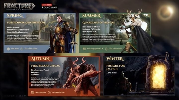- Hiver 2022 : Fractured Online rentre dans la dernière ligne droite. Le titre garde encore quelques surprises pour sa sortie dont une fonctionnalité qui n’est pas encore prête à être annoncée. Restez connectés pour en savoir plus !