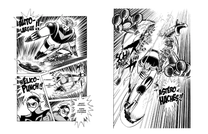 En plus des chapitres classiques, le tome inclut 200 pages inédites ainsi que de multiples bonus : frontispices, pages couleurs d’époque, mais aussi un dossier unique dédié à la vision des robots et des OVNIs dans la presse jeunesse japonaise des années 70. Autant d’éléments qui replacent Goldorak dans son contexte historique et dans la révolution culturelle qu’il a incarnée.