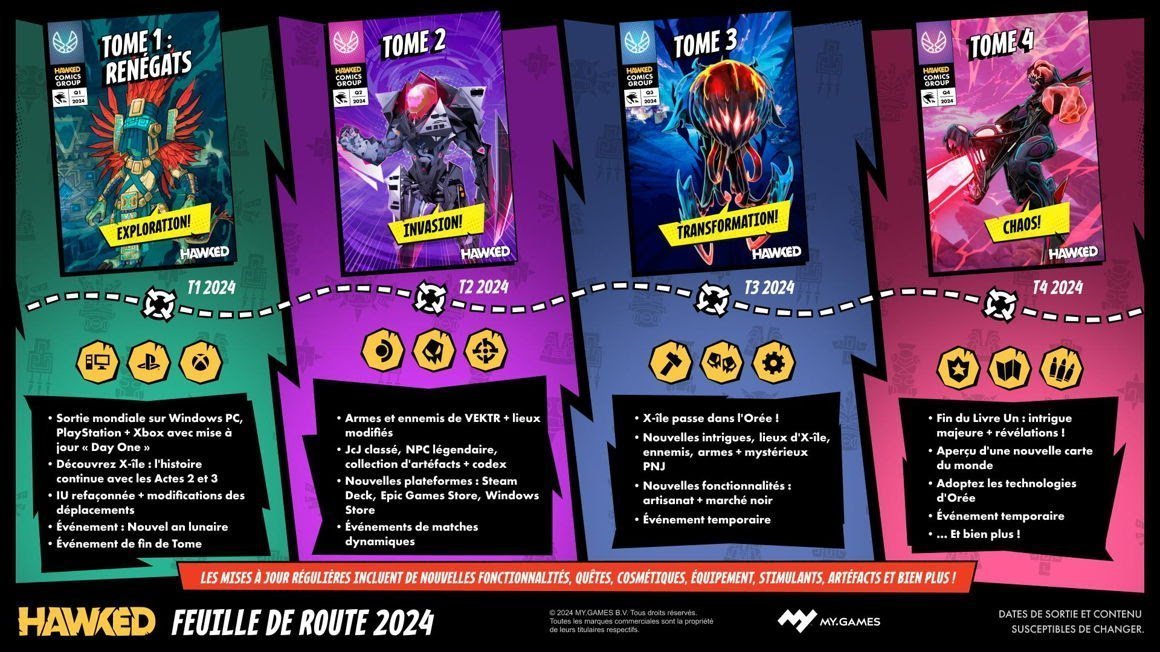 - Premier trimestre 2024 : Lancement mondial de HAWKED sur PC, PS5, PS4 et Xbox Series S | X avec une mise à jour Day One.