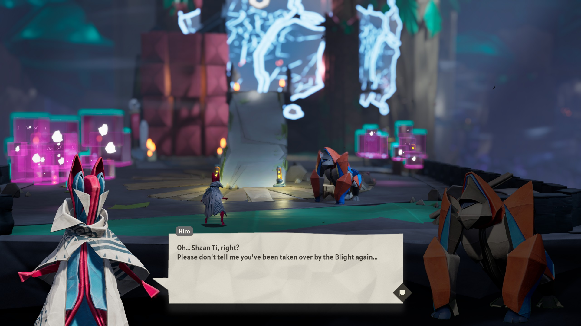 Dans Hirogami , les joueurs incarnent Hiro, un brave guerrier qui défend son monde fragile contre des envahisseurs numériques connus sous le nom de « Blight ». Maîtrisant l’art ancestral du pliage, Hiro exploite la puissance des formes animales en origami pour s’écraser, fracasser, bondir, rouler et s’envoler à travers des énigmes de plateforme, vaincre ses ennemis et, avec votre aide, sauver sa paisible patrie, le village de Shishiki.