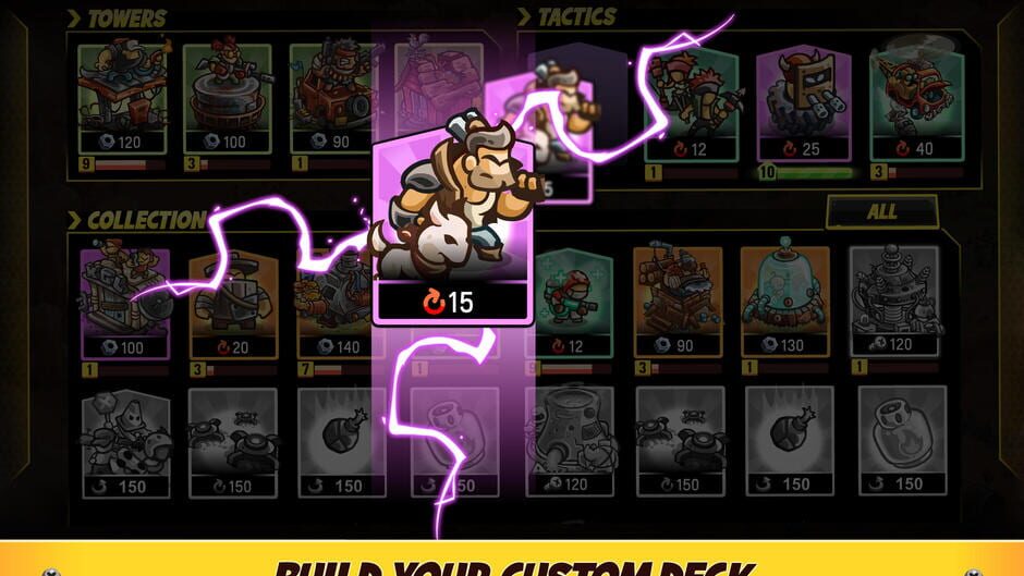- Plus de 40 cartes à jouer améliorables sont disponibles pour déployer des tours ou encore des tactiques dévastatrices.