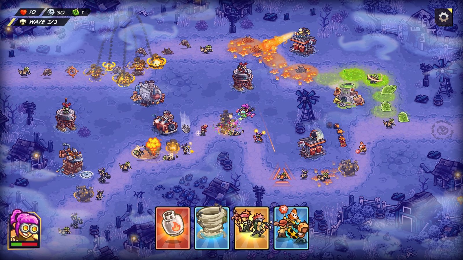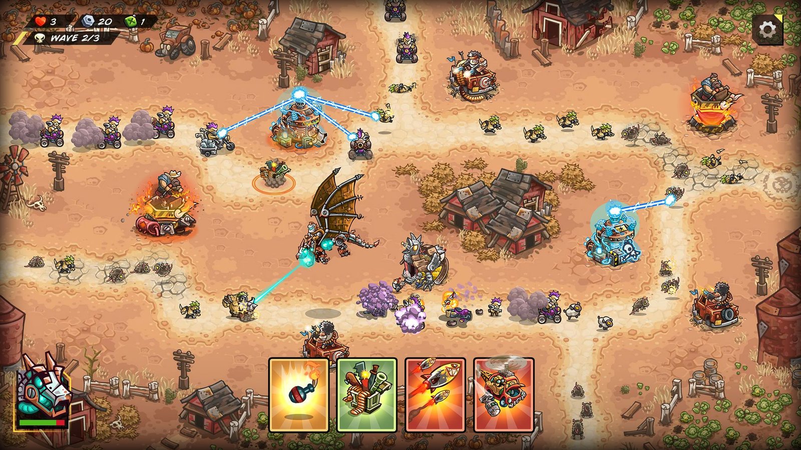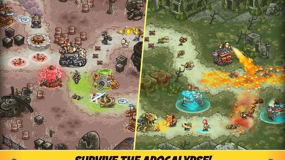 Sautez dans le désert et préparez-vous au chaos! Dirigez votre gang de charognards à travers un désert sec et stérile et un marais radioactif dans une bataille pleine d'action pour la survie. Utilisez votre maîtrise stratégique pour faire tomber le régime tyrannique de ce monde dévasté. Testez vos esprits avec un éventail de tours amélioables et de tactiques intelligentes pour repousser vos ennemis et avancer sur votre chemin vers la victoire! Découvrez les meilleures combinaisons, mettez-les au combat et utilisez votre arsenal personnalisé pour détruire vos ennemis! Placez vos défenses où que vous souhaitiez et gérez efficacement pour faire tomber les ennemis avec les compétences spéciales de chaque tour.