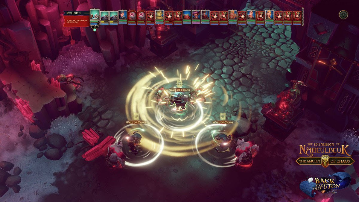 L’Amulette du Désordre n’est ni plus ni moins que le RPG tactique dérivé de cette saga fantastique. Aussi, les joueurs s’y lancent-ils dans une aventure épique combinant le plaisir, la créativité et le chaos d’une campagne de JDR sur table. Dans Retour vers le Futon, 4 nouveaux chapitres permettent de découvrir de nouveaux objets et compétences légendaires. La durée de jeu est estimée à une vingtaine d’heures, soit la moitié de celle du jeu originel ! Enfin, les personnages peuvent y atteindre le niveau 16 et développer de nouvelles mécaniques de jeu. Ah, et il y a aussi beaucoup de poules.
