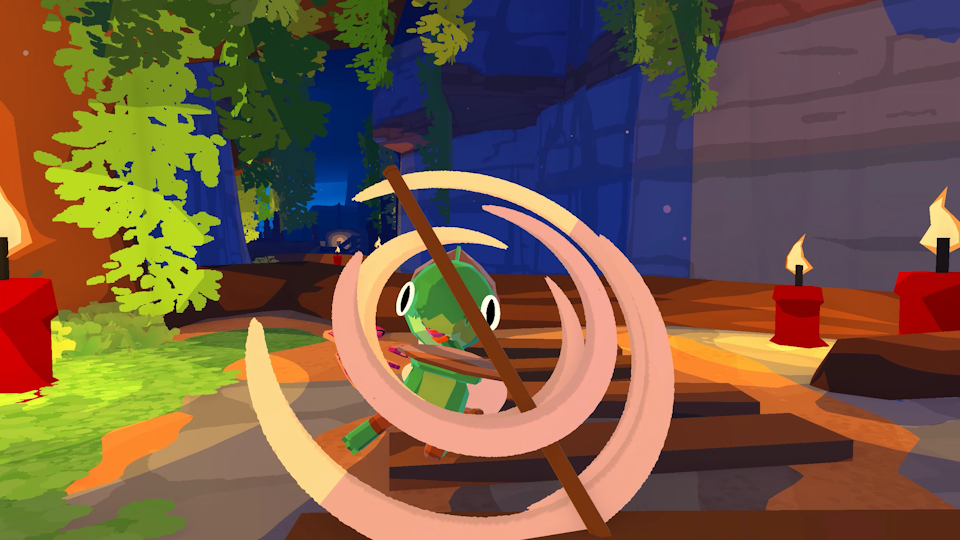 - Lil Gator jouit de nouvelles capacités de mouvement ainsi que de gadgets ludiques. Par exemple, des rubans de gymnastique pour des doubles sauts stylés, ou encore des attaques au sol dévastatrices. De quoi rendre l’exploration plus rapide, libre et expressive que jamais.