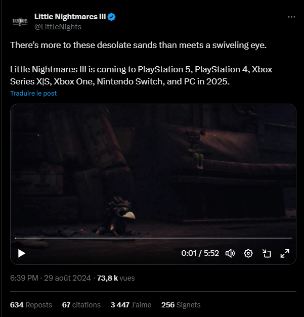 En attendant de pouvoir mettre la main sur ce nouvel opus, vous pouvez suivre Little Nightmares III sur les réseaux tels que Twitter, sur YouTube, sur le site de Bandai Namco ou sur le site de Supermassive Games. Et vous pouvez toujours vous (re)faire la saga Little Nightmares et suivre notre page dédiée.