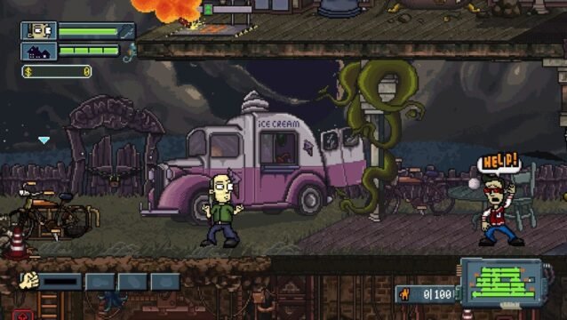 Une action rapide et complexe, un classement des meilleurs scores avec la première place à viser, une ambiance de film d’horreur des années 80 et un humour aussi bizarre que drôle !