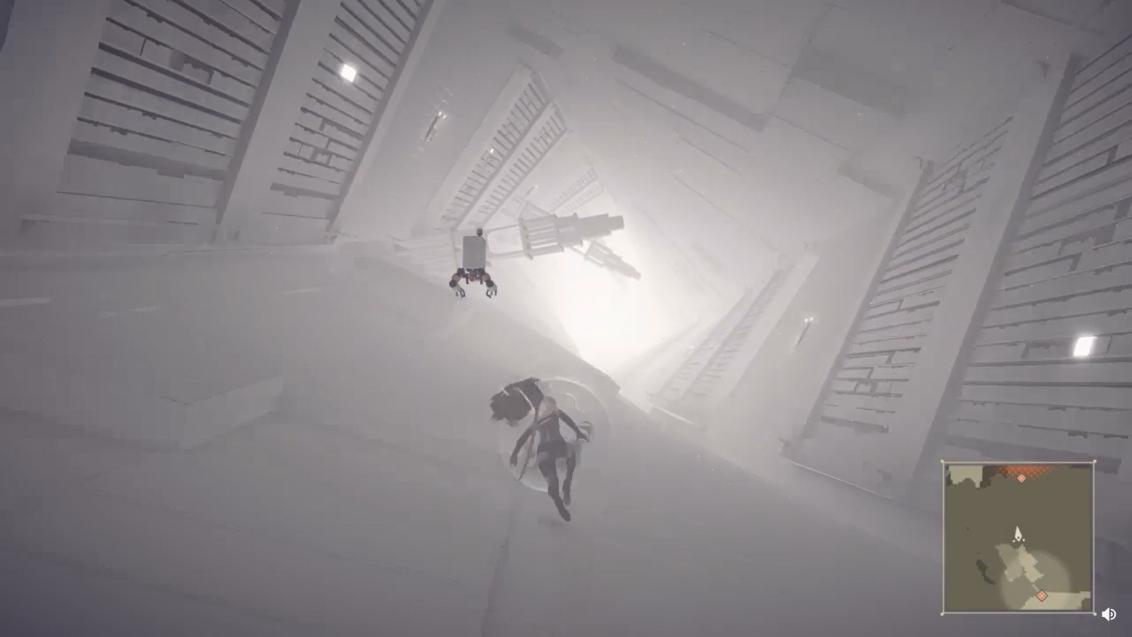 Et c’est donc aujourd’hui que tout s’est accéléré. L’internaute a d’abord publié une première vidéo d’une quarantaine de secondes. Dans ladite vidéo, nous voyons le personnage de A2 qui se trouve dans la Cité dupliquée en train de combattre plusieurs robots en même temps. Ensuite, A2 rentre dans une salle secrète, ramasse un composant puis commence à descendre une longue échelle. La vidéo se termine par une deuxième ouverture de porte et pendant quelques secondes, nous pouvons apercevoir une longue salle complètement difforme et qui semble être hors du temps et de l’espace.