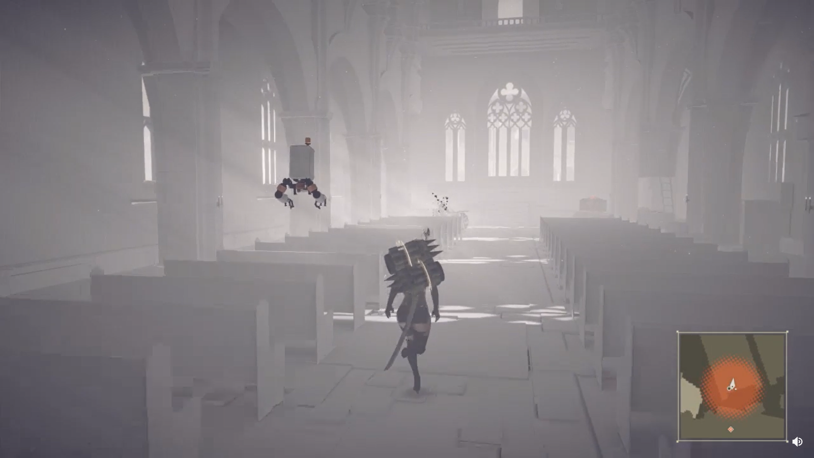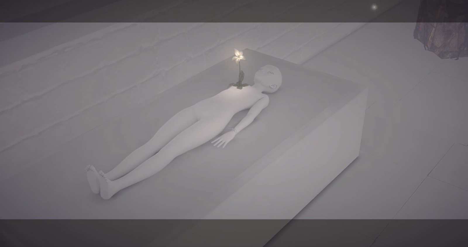 Dans la deuxième vidéo, A2 traverse donc la salle difforme, le tout sur des notes de piano mélancoliques. Elle arrive enfin dans la fameuse église et une cinématique se déclenche. Cette dernière montre notamment ce qui semble être le corps d’un humain dénué de vie, et une fleur sortant de son torse. À l’heure où nous écrivons ces lignes, le mystère demeure entier et il est important de préciser que sadfutago est le seul joueur au monde ayant eu accès à cette église jusqu’à maintenant.