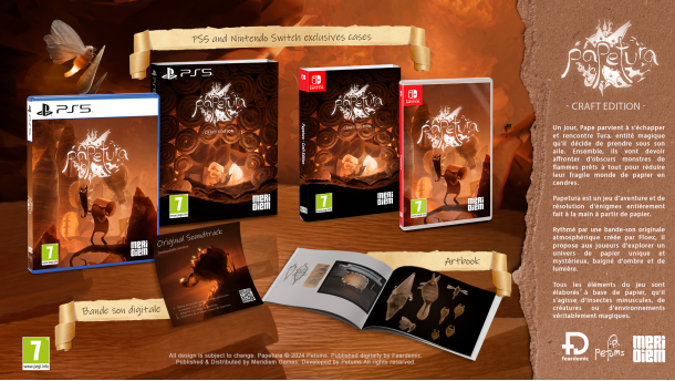 Vous connaissez sans doute déjà ce nom, car le titre est disponible depuis quelque temps sur consoles et PC, mais si l’on vous en reparle aujourd’hui, c’est parce que le développeur Petums et l’éditeur Microids Distribution France viennent d’annoncer la disponibilité de Papetura – Craft Edition. Il s’agit d’une édition physique du jeu sur consoles PlayStation 5 et Nintendo Switch, qui contient le jeu, un artbook ainsi que la bande-son digitale. Une excellente nouvelle pour les collectionneurs, ainsi que pour les joueurs privilégiant les éditions physiques ou le format dématérialisé.