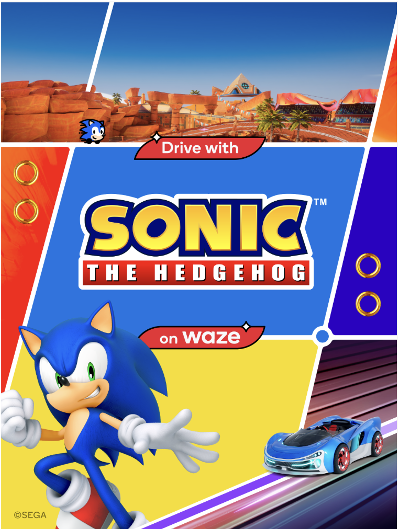 Sonic the Hedgehog – SEGA et Waze s’associent pour vous permettre d’ajouter Sonic à vos trajets en voiture !
