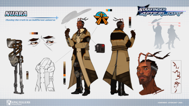 Interprété par Bill Butts (One Piece, Cyberpunk: Edgerunners, Tekken: Bloodline), Nuara se présente comme un Lashunta « Unbound » et un ancien agent de terrain de la Société des Starfinders, devenu détective privé. Il croyait autrefois au système en place, jusqu’à ce que l’univers le place à la croisée des chemins avec des vies innocentes des deux côtés de la balance. Après avoir payé le prix de ses décisions, il a tourné la page.