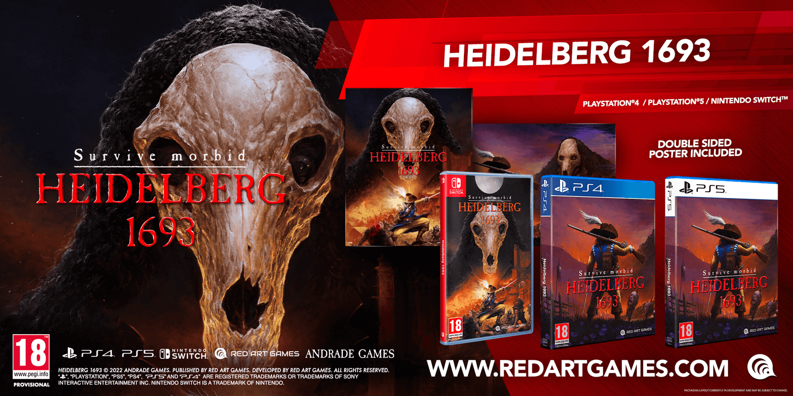 Des éditions physiques sont d’ores et déjà précommandables pour Nintendo Switch et PlayStation 4/5. Leur nombre sont respectivement limité à 2900, 999 et 999 exemplaires. Une autre version contenant les deux jeux, Stumfront – The Mutant War : Übel Edition et Heidelberg 1693, et exclusive à la PlayStation 5 est également précommandable sur la boutique en ligne officielle de Red Art Games. Et il n’y a encore que 999 exemplaires de disponibles. Autrement, Heidelberg 1693 sera téléchargeable dès le 18 novembre. Un univers intensément noir nous attend…