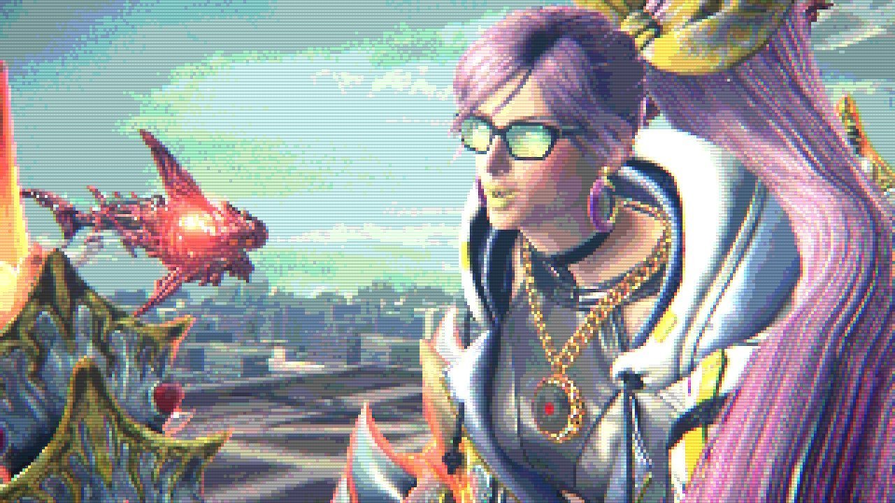 Si le titre multiplie les clins d’œil visuels à des monuments de la pop culture et vous permet de diversifier son gameplay à travers des phases inédites, allant même jusqu’à vous proposer un jeu de rythme digne de l’opéra, Platinum Games a même été jusqu’à inclure un jeu dans le jeu. Ainsi, les phases où vous incarnerez Jeanne vous feront jouer à Jeanne’s Spy Action. Dès lors, on a l’impression d’être dans un jeu indépendant d’action/infiltration en vue de profil introduits par un générique très eighties qui fait penser à James Bond ou à l’opening de l’anime Cowboy Bebop de Shin’ichirō Watanabe. Un moment qui nous prend quelque peu à contre-pied jusqu’au final qui s’apparente à un run and gun sur un side-car. Une fois finie, vous pourrez obtenir un mini jeu au gameplay similaire et à l’esprit définitivement old school dans la boutique de Rodin. Si le gameplay reste le même, fini la jolie 2,5D, place à une bouillie de pixel digne des productions d’antan. Si vous gagnez, vous récolterez des points pour vos achats. Grâce à eux, vous pourrez débloquer, entre autre, de nouveaux coups. En récoltant l’essence des homonculus vous pourrez acheter de nouveaux objets collectors et de nouvelles tenues pour Bayonetta ou de nouveaux T-shirts pour Viola. Cet épisode vous permettra également et une nouvelle fois de vous confronter à Rodin si vous êtes suffisamment patient… Le serez-vous ?