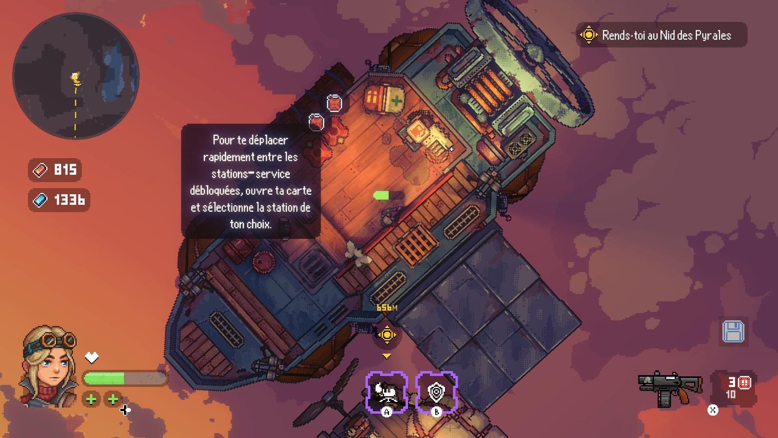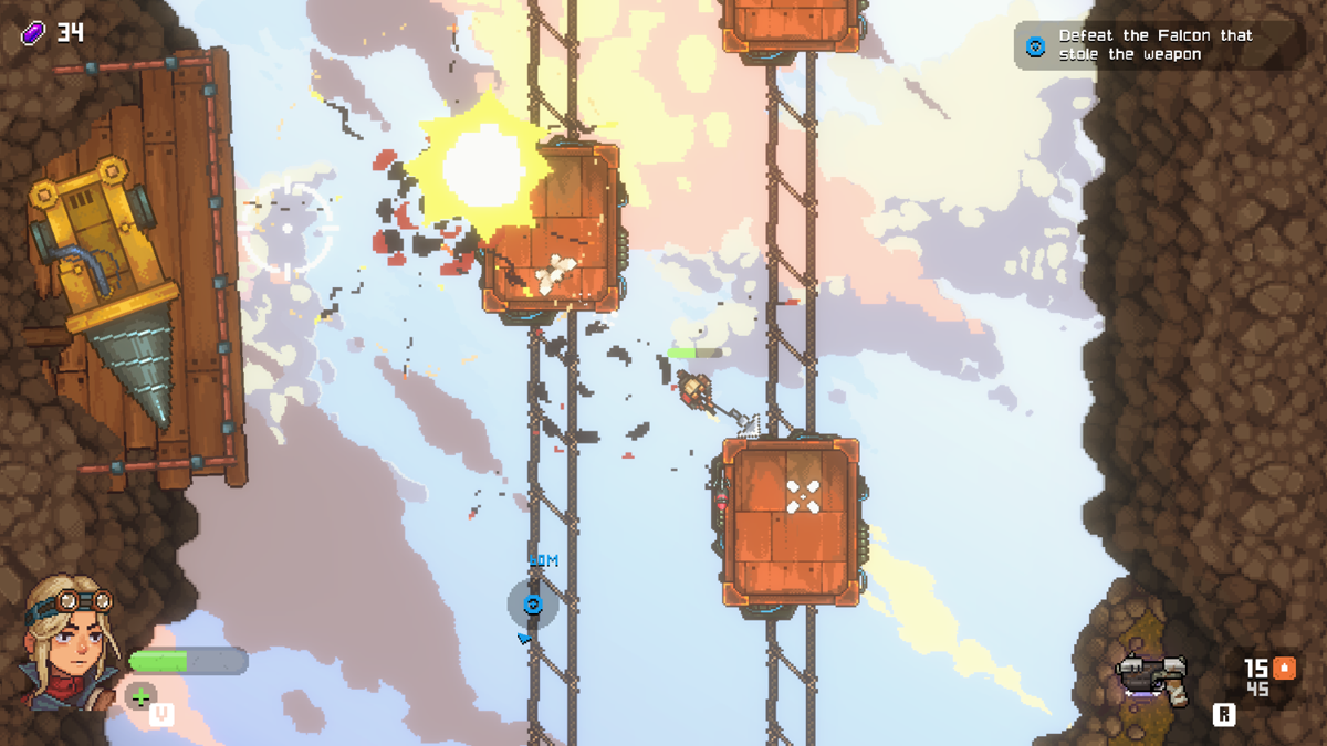Black Skylands présente un captivant mélange d’action steampunk en fusionnant avec ingéniosité les éléments caractéristiques d’un jeu sandbox et d’un top-down shooter. Le jeu combine des éléments de combats, des missions en monde ouvert, le tout dans un univers 2D rétro. Si le titre ne fait pas tellement référence à première vue à l’histoire, il n’en reste pas moins qu’il résonne progressivement avec une signification plus profonde au fil de l’histoire. Ce subtil décalage entre le nom du jeu et le développement de l’intrigue s’avère être une métaphore astucieuse de la globalité de Black Skylands.