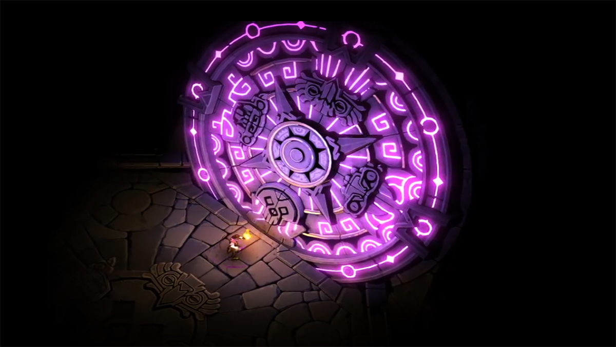 Il arrive par la suite dans une immense salle où une imposante porte trône sur le mur du fond. Restant dans l’ambiance un peu lugubre des lieux, celle-ci semble aussi maléfique et mystérieuse que le reste du temple. Mais n’ayant d’autre choix que d’avancer, notre brave protagoniste pose sa main contre cette porte dans l’espoir de l’ouvrir. Son bras se retrouve alors harponné par une magie noire. Ceci étant, la magie semble réactive à son membre et créée une sorte de lien qui permet alors à la porte de s’ouvrir. Mais non pas sans laisser une marque profonde sur le bras de notre héros.