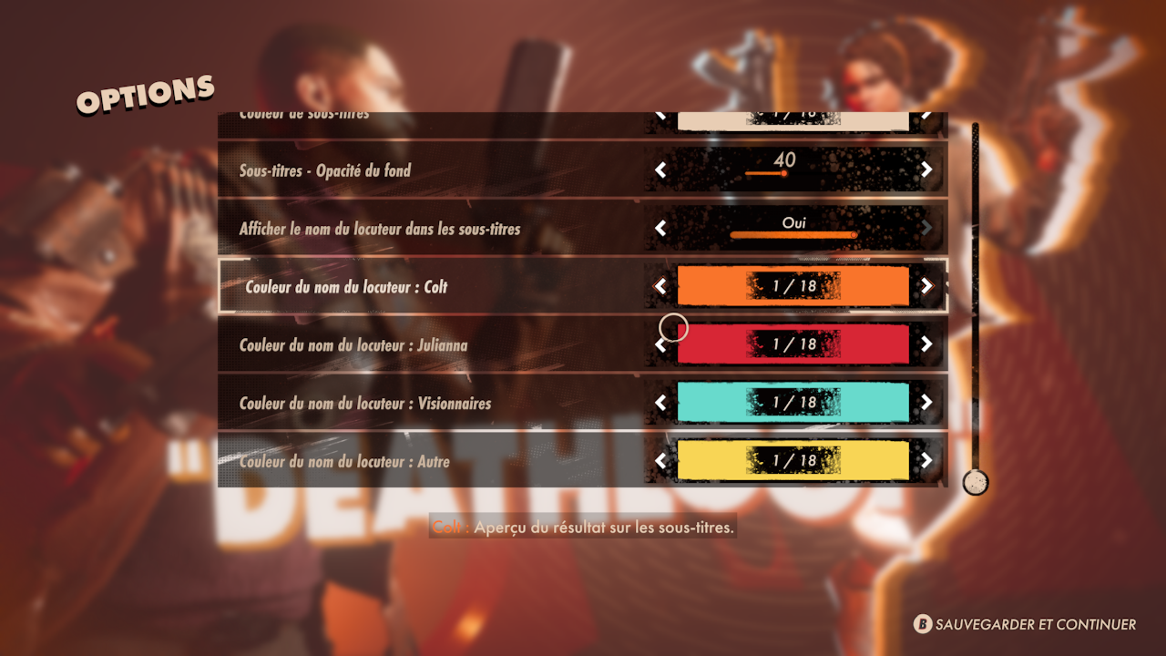 Enfin, on fini ce test par la partie qui m’a sans doute laissé le moins de marbre : les dessins et la musique. Dans Deathloop, nous sommes projetés dans une boucle (in)temporel au style plutôt rétro. Ainsi, l’ensemble des tenues et des personnages ont un petit air disco bien original et sympathique. Différents indices permettent de localiser temporellement le début de l’expérience, et date le jeu, ce qui est vraiment sympathique. Puis, on vous laisse voir : les décors sont bien soignés, les personnages principaux charismatiques … Tout est fait pour plaire ici. Pourtant, on se retrouve également dans un univers très sombre. De nombreux terrains sont pleins de recoins, les rues font sales et tout nous mets dans une ambiance très dérangeant.