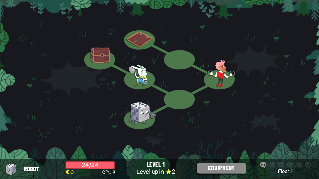 Dans chaque niveau, des monstres viendront vous mettre des bâtons dans les roues afin de vous exterminer. Avec plus d’une soixantaine d’ennemis et une quarantaine d’épisodes, Dicey Dungeons vous tiendra éveillé un bon moment. Mais une fois le troisième ou quatrième personnage débloqué, on commencera tout de même à ressentir une forme de redondance. On enchaine les combats, on améliore son équipement et on nettoie la zone de fond en comble pour pouvoir passer à la suivante. Finalement, on va souvent faire tous les niveaux d’un personnage puis passer à un autre jeu et revenir quelques jours plus tard sur celui-ci pour ne pas se lasser trop vite.