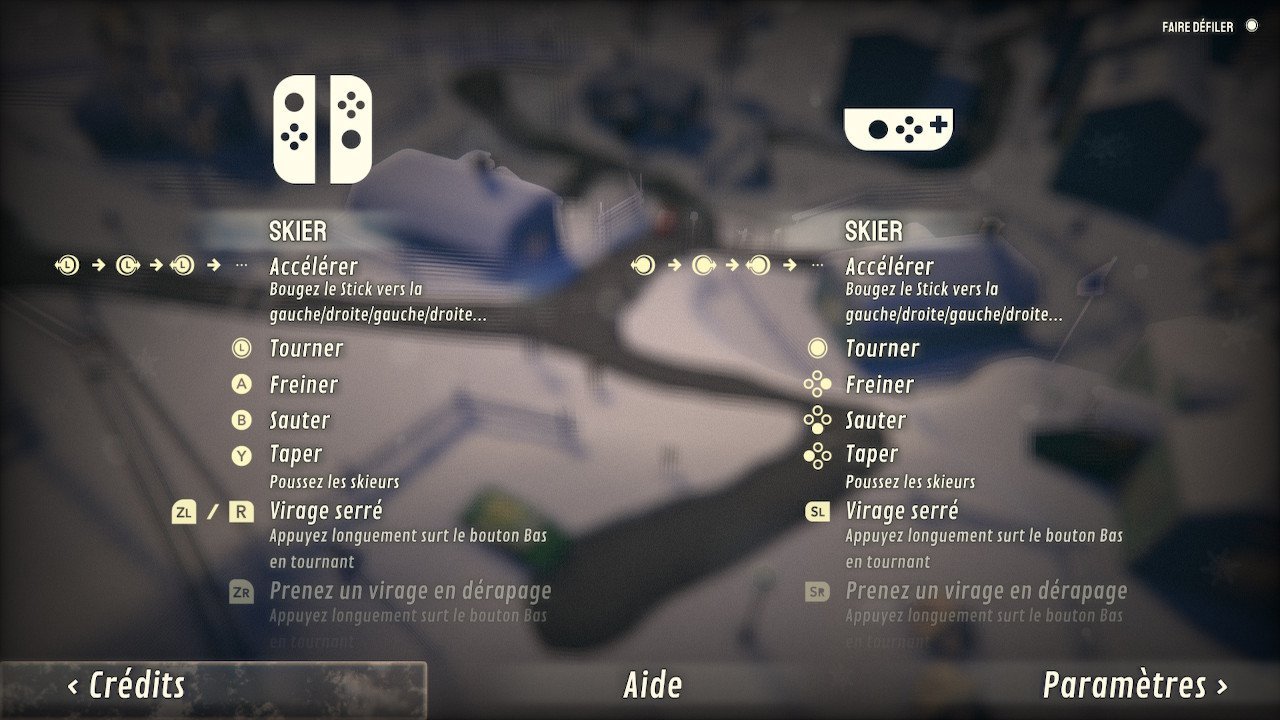 Ici, on nous apprend qu’en plus des boutons disponibles sur la première piste, il sera possible d’utiliser les gâchettes ZR ou ZL pour des virages serrés qui permettront également de se retourner sur vos ski/snow, et qu’en plus de cela il sera possible d’effectuer des figures de style via les deux sticks analogiques lors d’un saut ou l’utilisation de tremplin…Et vous allez vite le découvrir à vos dépend.