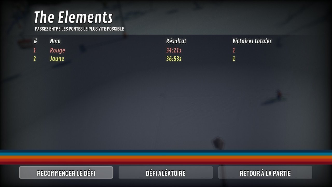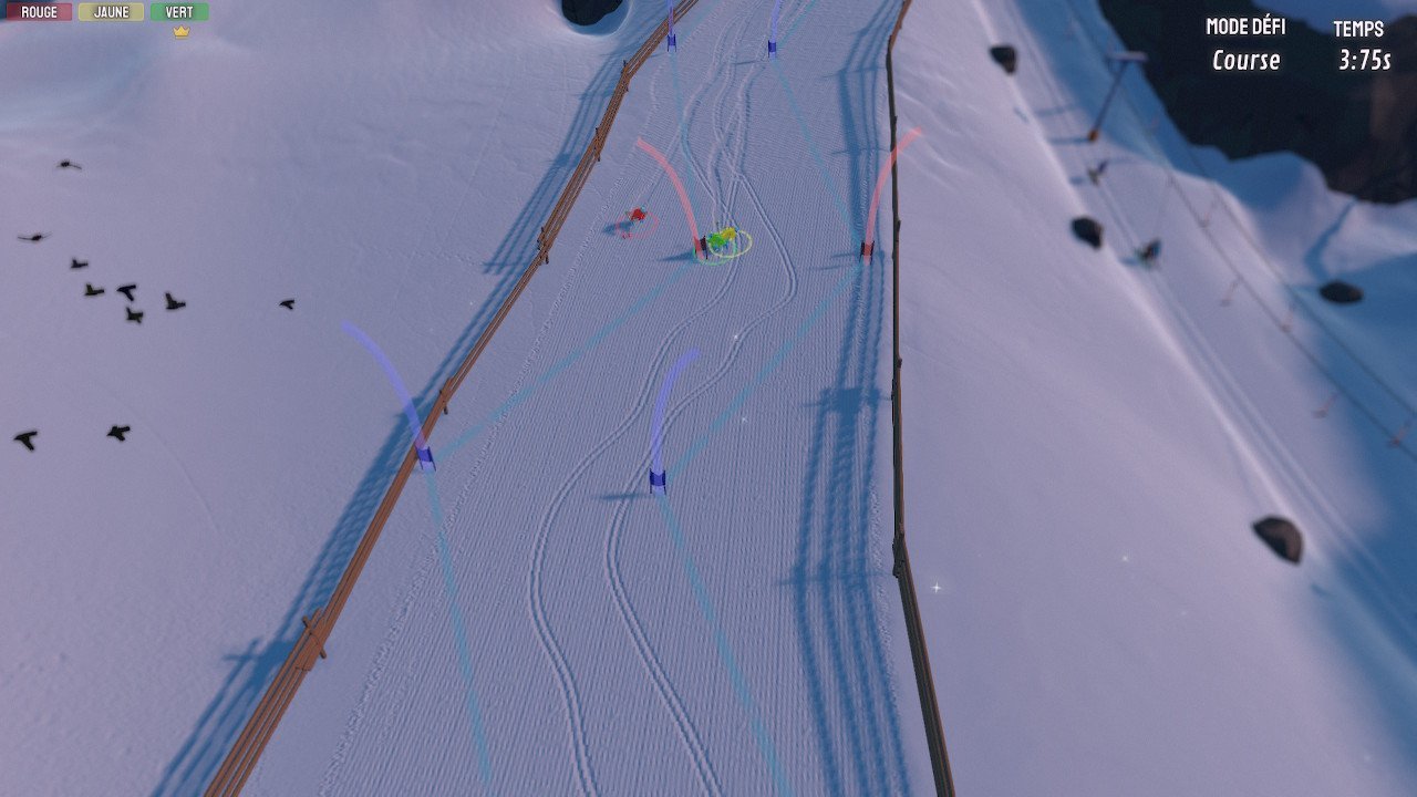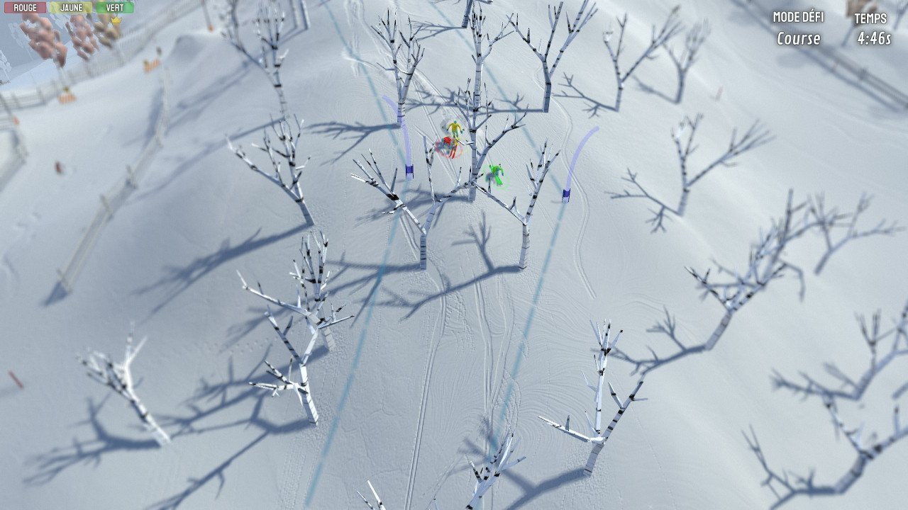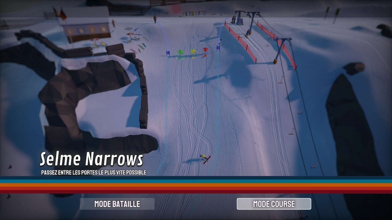 Lors des courses en multi, les règles ne changent pas vraiment, néanmoins si vous loupez une porte de couleur, votre skieur ralentira et se fera dépasser par les autres concurrents ! Le but est bien évidemment de franchir la ligne d’arrivée, ou d’avoir plus d’une seconde d’avance sur les autres protagonistes pour gagner !