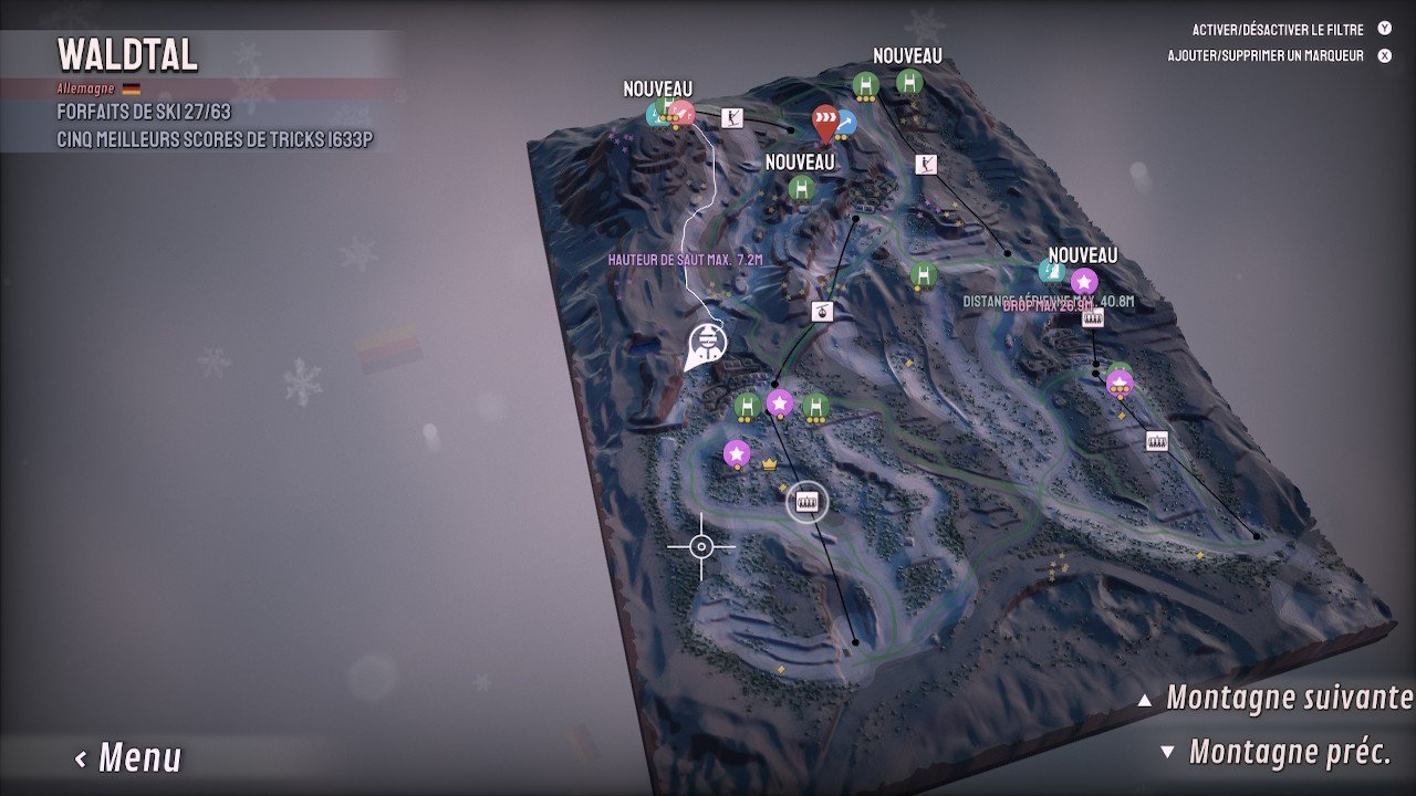 Puis après quelques épreuves effectuées et un certain nombre de forfait atteints, vous débloquerez la deuxième montagne Allemande Waltdal, et c’est ici que l’aventure commence réellement ! La première montagne, vous permet d’apprendre les bases du jeu, la seconde montre que le titre ne sera pas facile et que la difficulté ira crescendo !