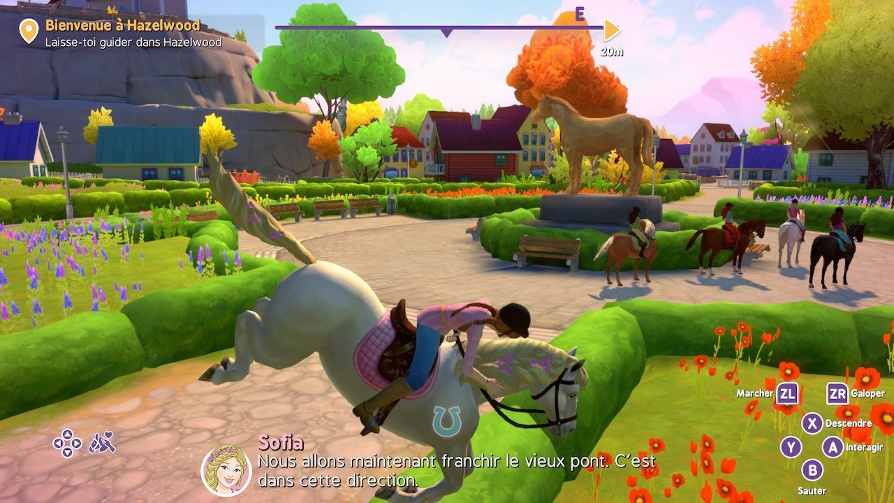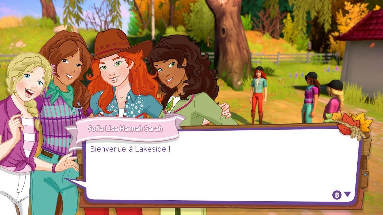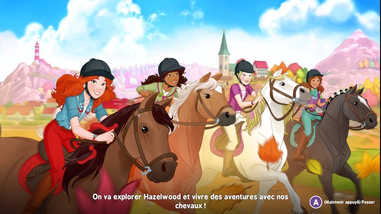 D’emblée, vous voilà dans le vif du sujet. Vous retrouvez Hannah, Lisa, Sarah et Sofia qui vous attendent avec leurs montures Cayenne, Storm, Mystery et Blossom pour une petite exploration d’Hazelwood. Et comme le dit Hannah : « C’est vraiment super de partir en balade quand les arbres de la forêt et de Hazelwood se parent des couleurs de l’automne et que les feuilles bruissent sous les sabots (des) chevaux. »
