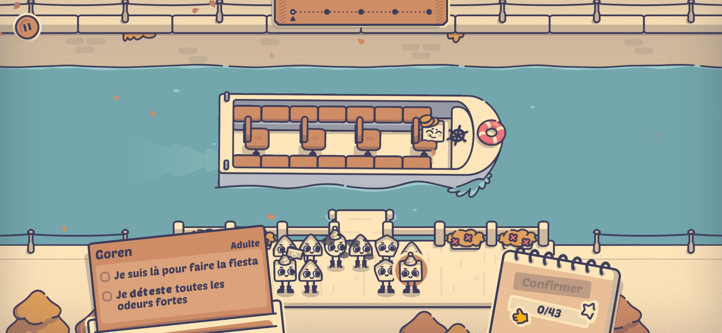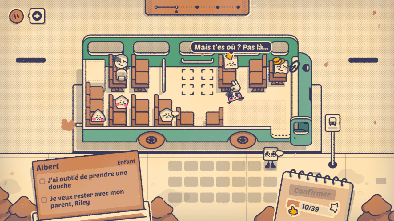 Une fois tout le monde satisfait, un pouce jaune s’affiche et vous permet d’avancer vers le niveau suivant. Chaque zone est constituée de 4 à 5 niveaux, et si vous échouez, pas de panique : le jeu est indulgent et vous laisse progresser malgré tout. En revanche, sans avoir obtenu toutes les étoiles (une par passager bien placé), impossible de débloquer les niveaux secrets. Autrement dit, si vous voulez tout voir, il faudra vous creuser les méninges… et parfois même revenir quelques heures ou jours plus tard avec un œil neuf.