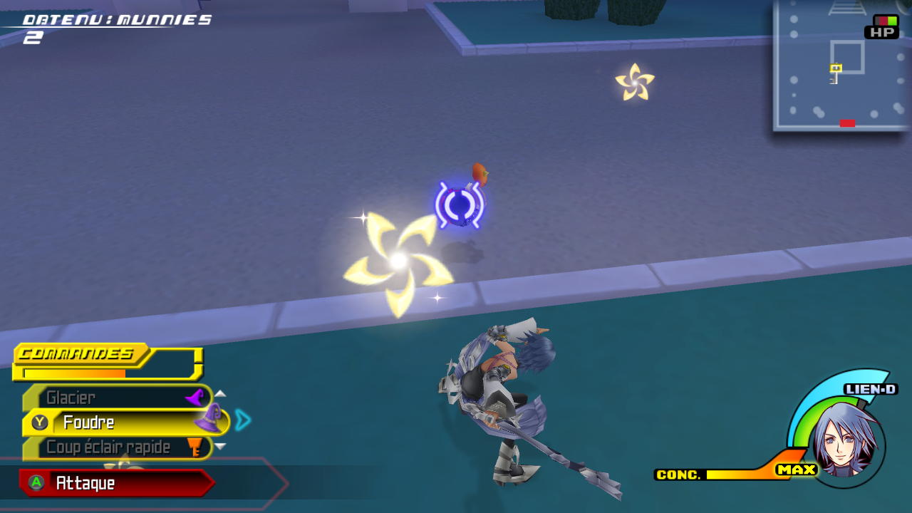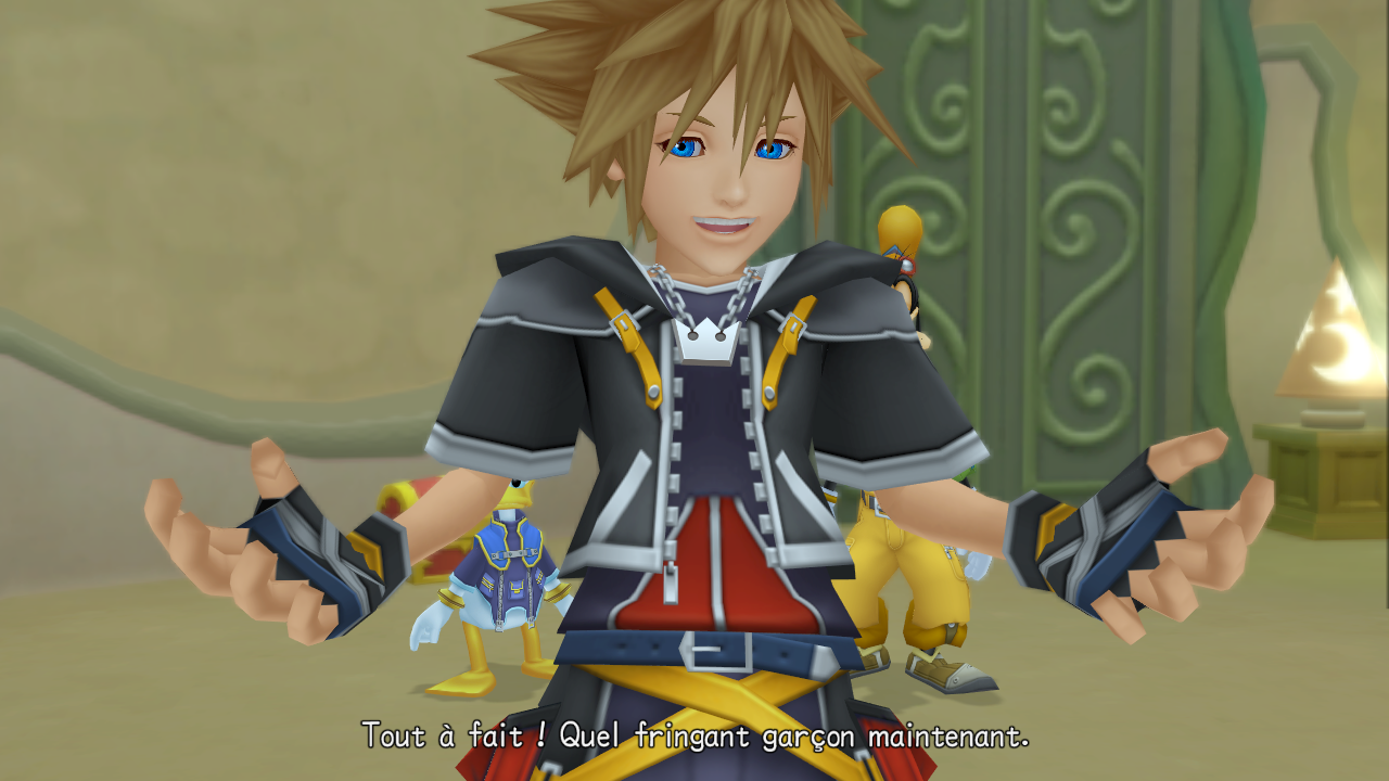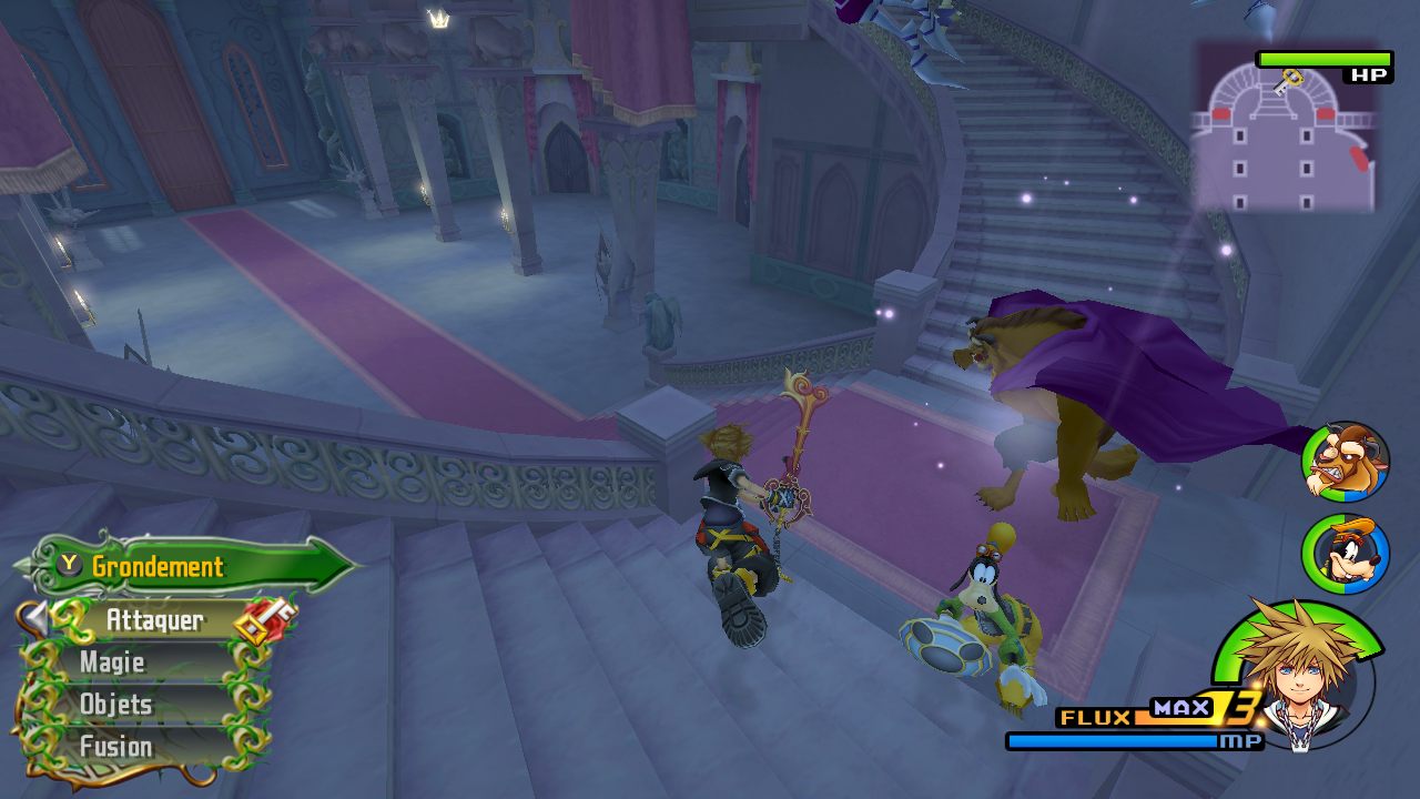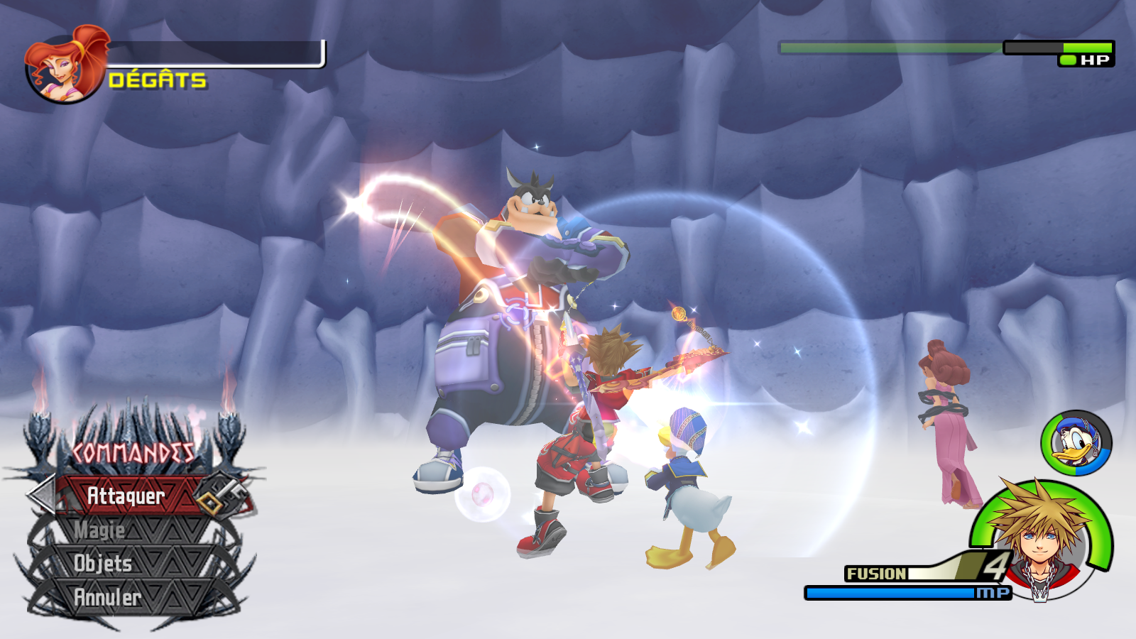 La jouabilité quant à elle, a bien changée ! C’est une victoire, la caméra est bien plus maniable et rend le tout vraiment plus agréable à jouer. Que ça soit pour les phases de combat, ou celle d’exploration, c’est quelque chose qu’il fallait changer et cela a été fait pour notre plus grand plaisir. D’ailleurs, parlons des combats. Si le cœur des combats restent les mêmes, il y a beaucoup d’ajout qui apporte beaucoup de dynamisme, comme par exemple la fusion, qui permet à notre héros de fusionner avec un de ses amis. En plus de changer l’apparence des vêtements de Sora, une seconde keyblade apparaît. Cela change ses combos, ses caractéristiques et le rend plus fort. A cela se rajoute des combats de boss qui ont tous leurs petites particularités et ne sont pas redondant.