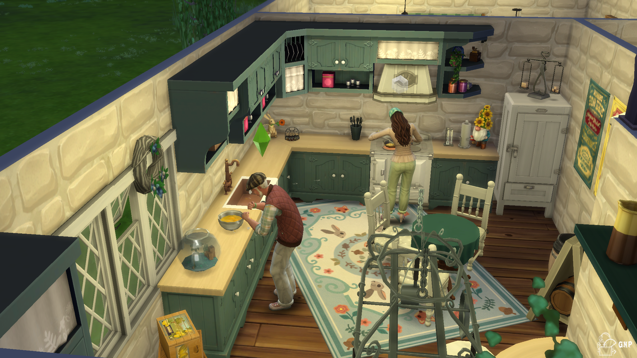 Pour combler toute cet espace, vous aurez la possibilité de mettre des étables, étangs et autres plantations. Ainsi sans bouger de chez vous, vous serez capable de pécher, chercher des grenouilles et barboter dans l’eau des étangs. Attention toutefois aux alligators … Côté étables, vous vous retrouverez à élever des vaches, lamas et même des poules. Bien sûr, le choix n’est pas immense, mais l’objectif ici était sans doute de ne pas rendre trop difficile le défi Vie Simple. On vous en a parlé, avec ce nouveau défi de terrain, il vous faudra récolter votre nourriture pour pouvoir la préparer. Ainsi, il vous faudra des œufs, du lait et des légumes et poissons comme avant.