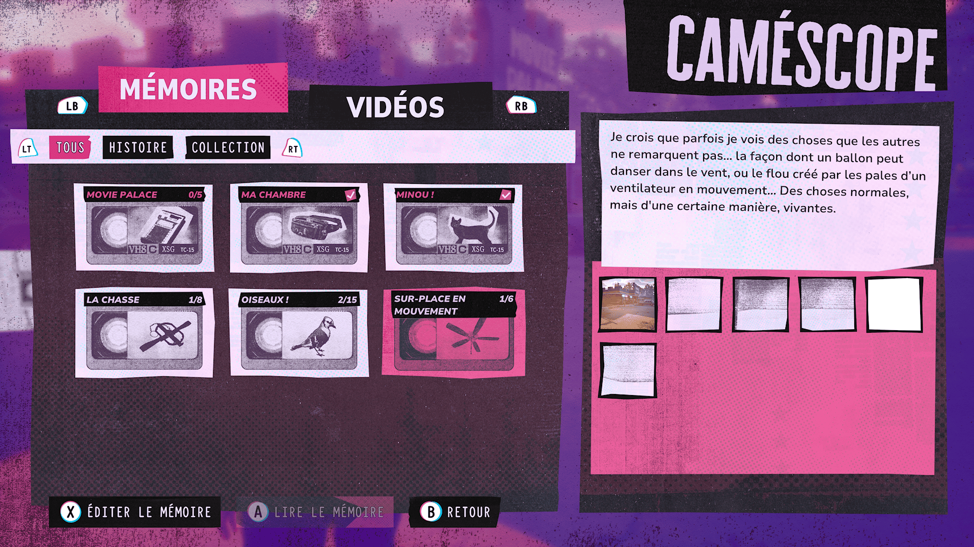 Oubliez les super-pouvoirs des Life is Strange ! Ici, pas de manipulation des émotions ou d’objets en lévitation. Lost Records: Bloom & Rage mise sur une approche plus terre-à-terre, où l’une des seules particularité du gameplay sera la caméra de Swan. Un simple appareil ? Pas tant que ça. Elle servira à immortaliser les meilleurs moments de son été 1995, mais aussi les plus anodins (comme des vidéos de sa chambre ou encore de la cabane dans les bois)… des fragments de souvenirs qui prendront tout leur sens lorsque, 27 ans plus tard, elle et ses amies se retrouveront pour affronter un passé qu’elles ont tout fait pour oublier.