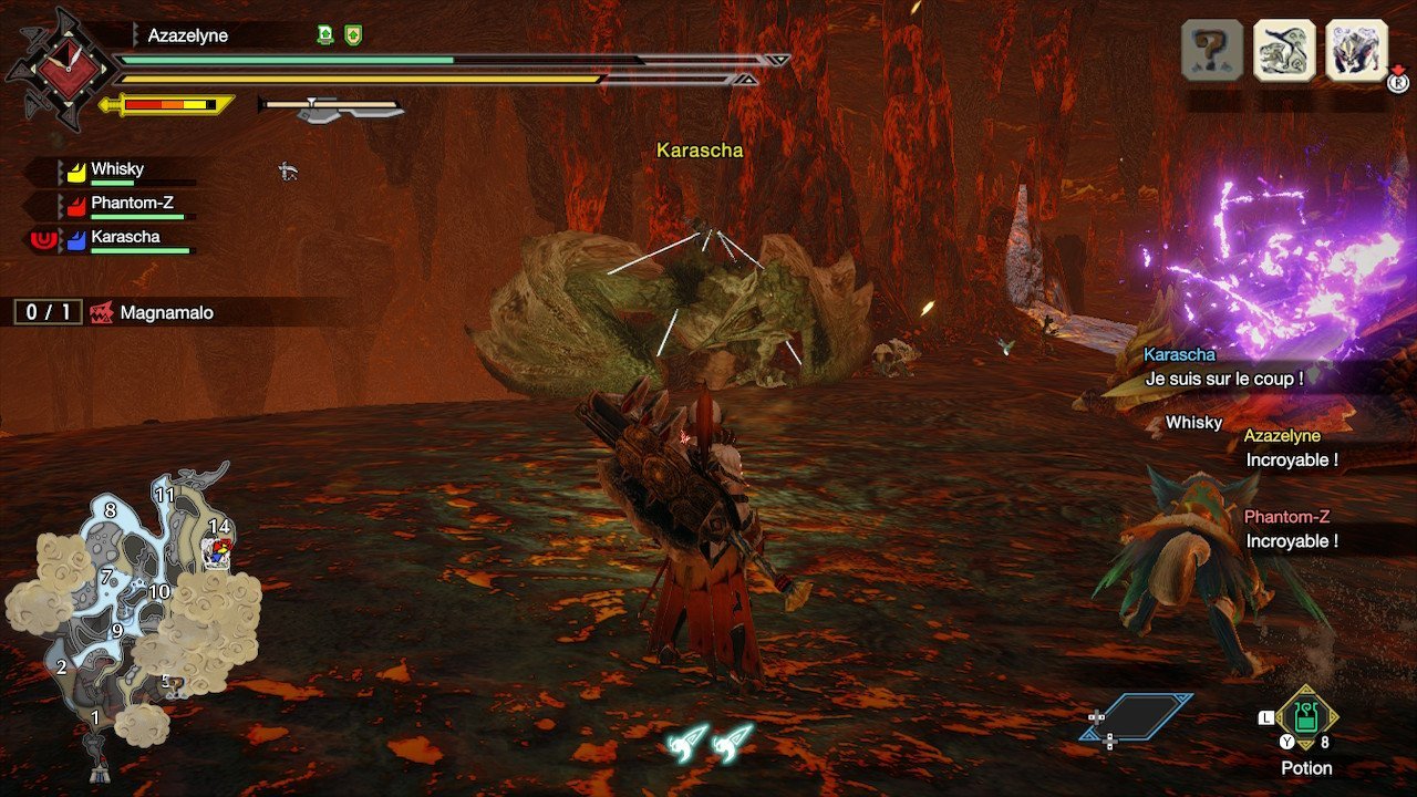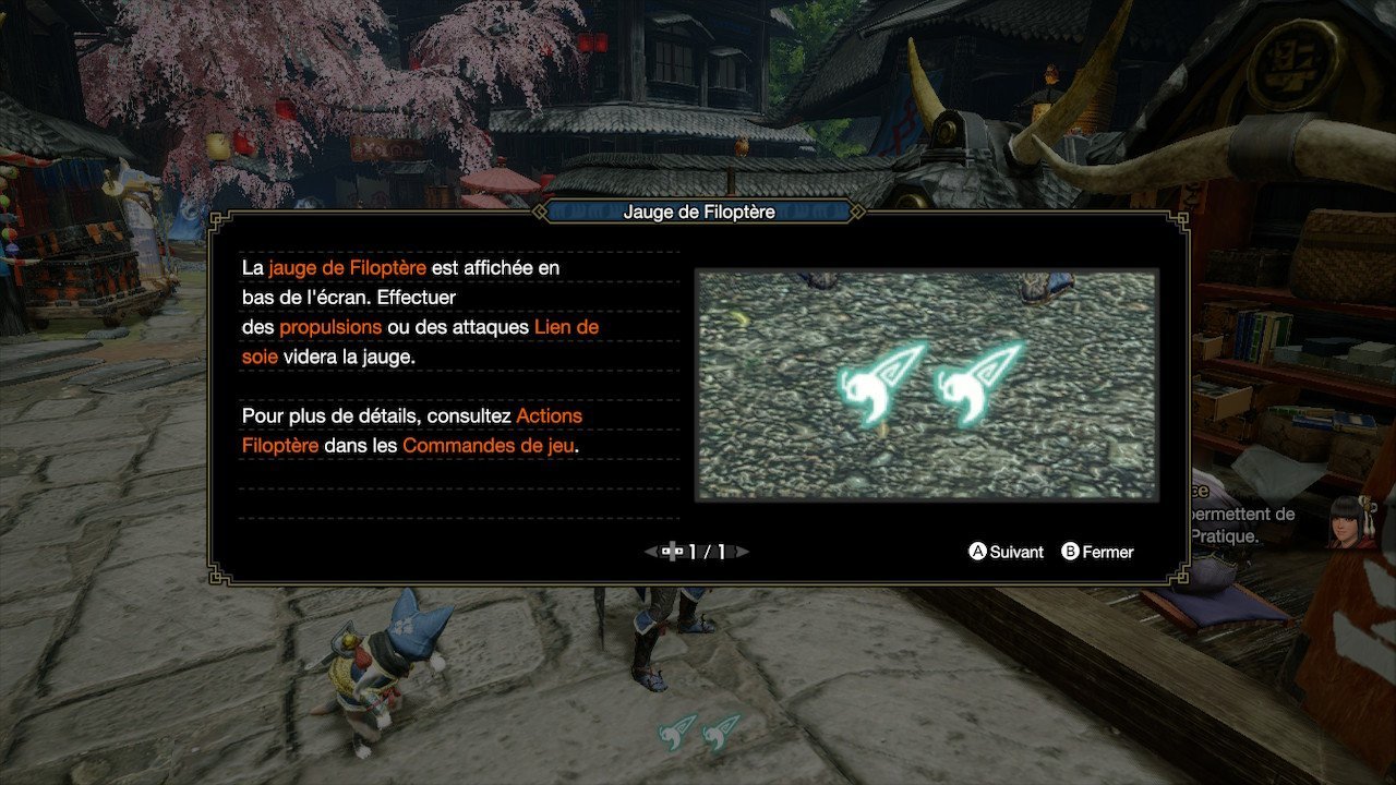 Une autre nouveauté de ce Monster Hunter Rise est le filoptère. Fini le grappin de Monster Hunter World et Iceborne. Ici, une jauge composée de deux ou de trois filoptères vous permettra de réaliser des choses plutôt impressionnantes. Pour commencer, la verticalité s’invite dans le jeu! Grimper sur les murs, passer au dessus de la tête d’un monstre en déployant une de ces petits créatures seront des choses courantes. De plus, ils permettent aussi d’utiliser des attaques liens de soie. Ces attaques puissantes seront vos alliées. Mais pourront aussi vous sortir de situations compliquées. Chaque type d’arme possède ses propres talents liés aux filoptères. Ce qui permet d’avoir une grande diversité de styles de combats. Mais les Filoptères servent également à pouvoir chevaucher les monstres (sauf exceptions). En effet, attaquer avec les attaques liens de soies permettent de remplir une jauge invisible sur les monstres. Une fois pleine, le chevauchement sera possible. De la, il suffit de monter sur le monstre, dans le but de faire un maximum de dégâts. Vous pourrez projeter vos adversaires dans les murs pour exploser leur tête. Mais pas que! La nouveauté réside surtout dans le fait de pouvoir le diriger un minimum. Et donc d’ouvrir d’autres possibilités. Dont celle de pouvoir attaquer un autre monstre avec votre « propre » monstre l’espace de quelques instants. De quoi faire quelques gros dégâts! De plus, une attaque placée correctement sur un monstre permettra de le rendre à son tour chevauchable…