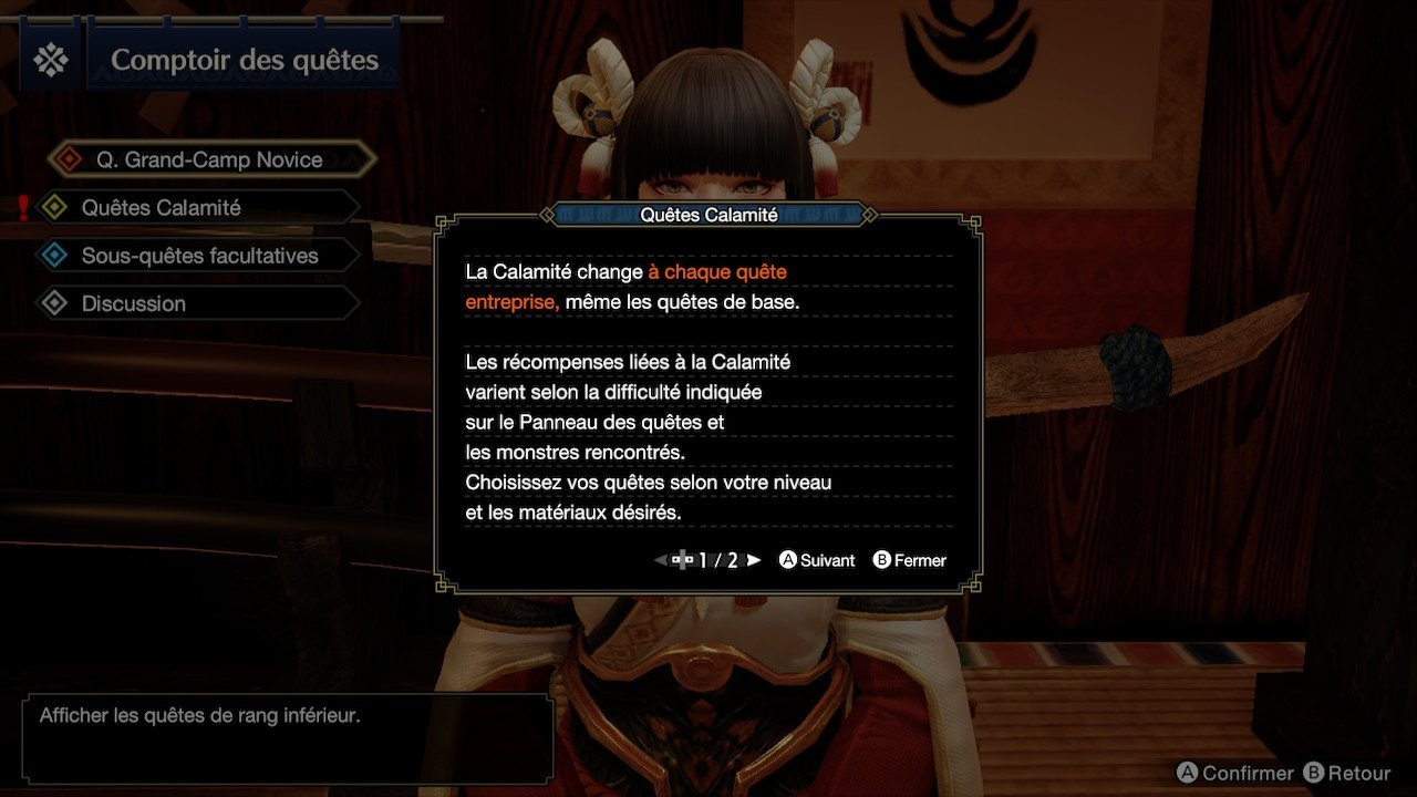 L’une des nouveautés de cet opus sont les quêtes calamités. L’histoire du jeu est basée sur ces dernières. Une créature qui se nourrit des hordes de monstres pour se renforcer, et le village à protéger. Ces quêtes peuvent être apparentées à du Tower Defense. En effet, ici, vous ne devez pas simplement aller vous battre contre les monstres. Mais les repousser du village. Et pour ça, tout un attirail est prévu. Attirail qui pourra être augmenté au fur et à mesure de la quête. Balistes, canons, pièges… Tout sera bon pour repousser la horde et protéger les portes du village (et donc le village et ses habitants). Mais cette calamité a aussi amenée avec elle un nouveau type de monstre. Les Monstres supérieurs. Ils remplacent en quelque sorte les sous espèces des opus précédents. Ils apparaitront pendant les quêtes calamités. Puis par la suite dans les biômes en DLC (mais ce point sera abordé dans un autre paragraphe). Plus puissants, ils sont également plus résistants que leur homologues « classiques ». Ils auront une couleur différente, et, souvent, auront des marques et des cicatrices leur parcourant le corps. Ils sont un danger bien plus élevé que de simples monstres.