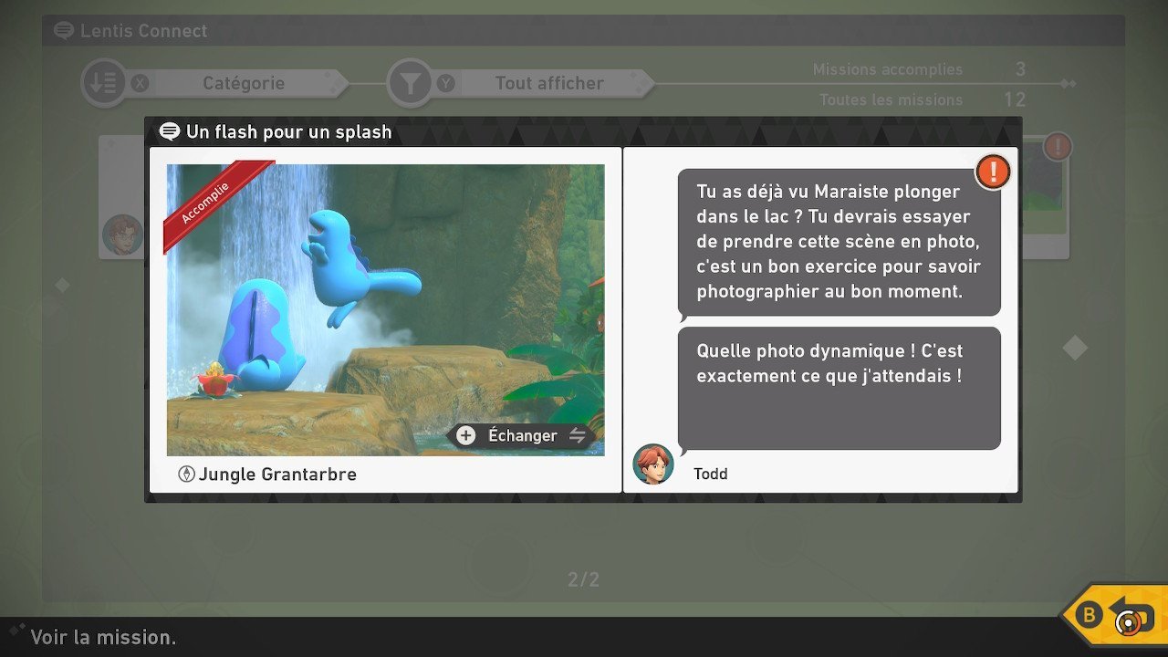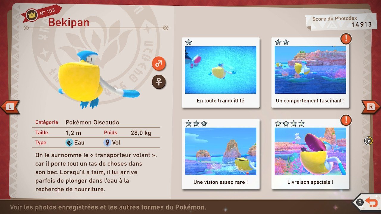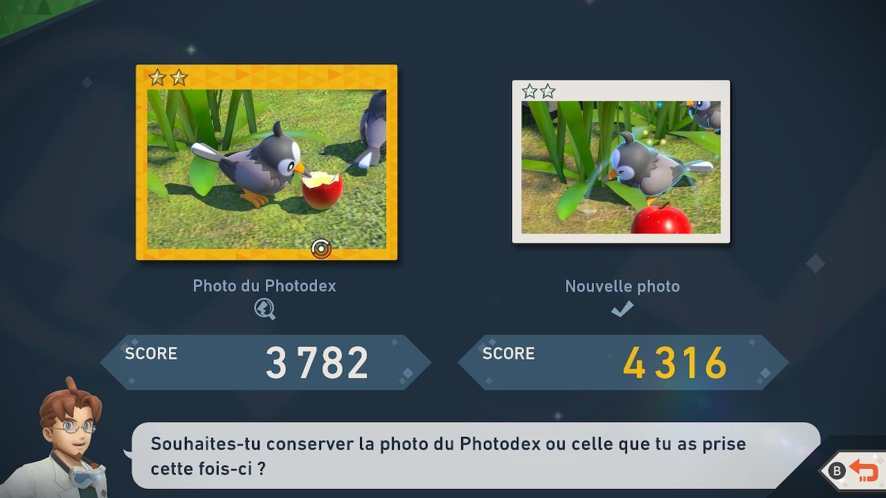 En effet, une fois dans mon laboratoire après vos balades, vous pourrez publier en ligne jusqu’à 6 clichés simultanément ! Si vous me l’autorisez, je peux moi-même en uploader deux si je trouve qu’elles sont exceptionnelles. L’appli Photoplus est là si vous souhaitez ajouter des filtres, cadres ou des stickers rigolo. Plus vous jouez et plus vous aurez l’occasion d’en récupérer. De même, mes autres assistants vous proposeront leurs propres missions avec cadeaux à la clé qui serviront à améliorer encore plus vos clichés. Attention, car les demandes de nos collègues et amies ne sont pas évidentes ! Il arrive même que certaines d’entres elles soient décourageantes. Ceci étant dit, comptez sur la communauté New Pokemon Snap pour vous surprendre avec leurs photos. N’hésitez donc pas à parcourir les albums en ligne et de donner des points à vos clichés préférés. Bien sûr vous pourrez même voir ce que vos amis ont publié et recevoir des « j’aime » des autres utilisateurs. Nul doute que certains d’entre vous passeront des heures à s’émerveiller dans ce mode de jeu.