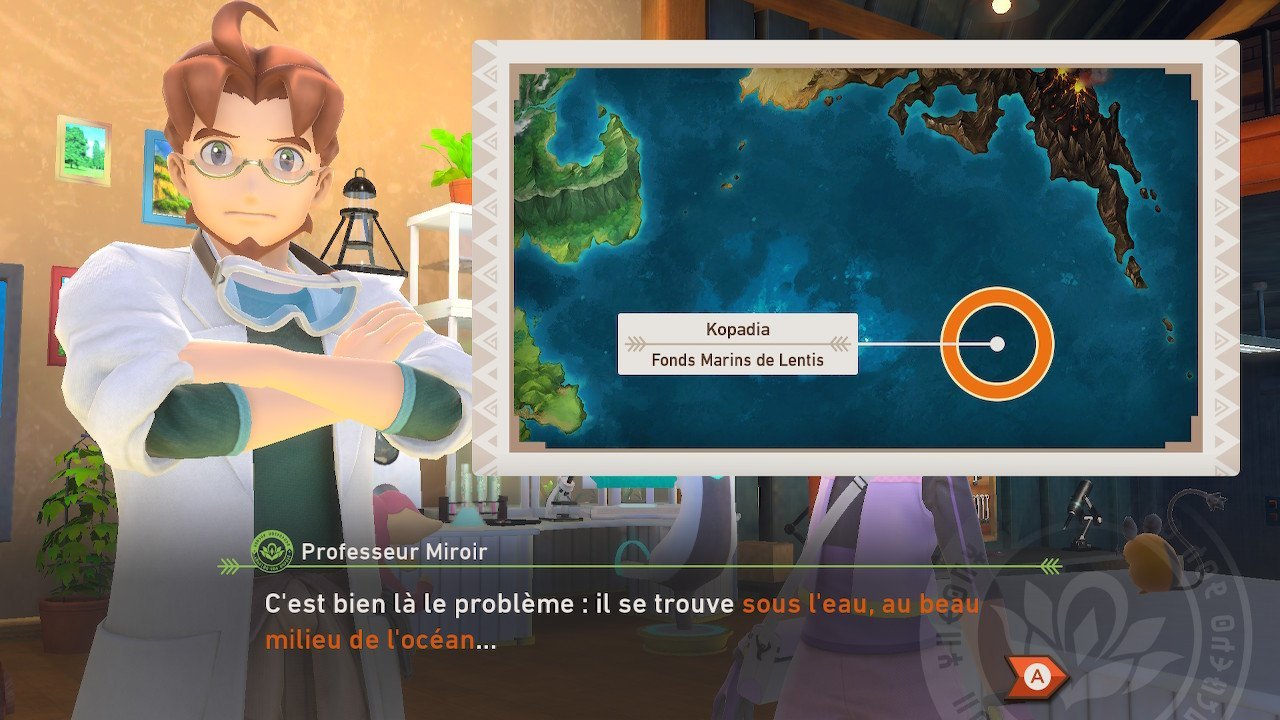 « Bienvenue dans mon laboratoire jeune apprenti. Je suis ici actuellement avec Rita pour étudier les Pokémon sauvages dans leur environnement naturel. Le but de mes recherches étant d’en savoir plus sur le phénomène « Lumina » qui affecte la faune et la flore de cet archipel paradisiaque. En résumé, certaines créatures et plantes émettent de léger scintillement particulièrement visible la nuit. Si l’on en croit le livre de l’aventurier Victor qui a été le premier à observer ce phénomène il y a 100 ans, certains Pokémon seraient devenus luminescents et gigantesques ! Je compte donc sur vous pour vous baladez sur les différentes îles qui composent la région de Lentis. Pour commencer vous devrez faire vos preuves le long de la côte et me ramener un maximum de photo de pokémon. Attention toutefois, votre pellicule ne peut contenir qu’un maximum de 77 photos. Evitez de trop vous enflammer sur certains sujets au risque de rater des photos uniques !