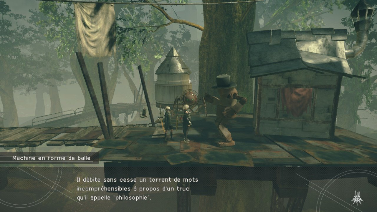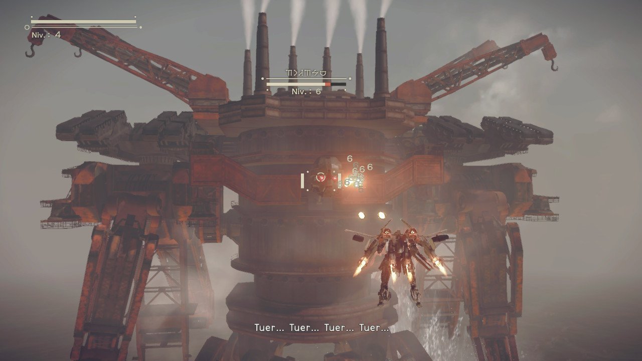 NieR : Automata nous propose donc un gameplay efficace et nerveux. Certains affrontements sont réellement impressionnants et grisants. Les boss sont juste mémorables. Nous nous retrouvons même face à des géants dignes de Shadow of the Colossus. Impressionnant. Donc, à la poésie du scénario s’ajoute la diversité et l’originalité du système de jeu. Voyons dans le prochain paragraphe de cet article si la réalisation ajoute la beauté à ce tableau (spoil : oui).
