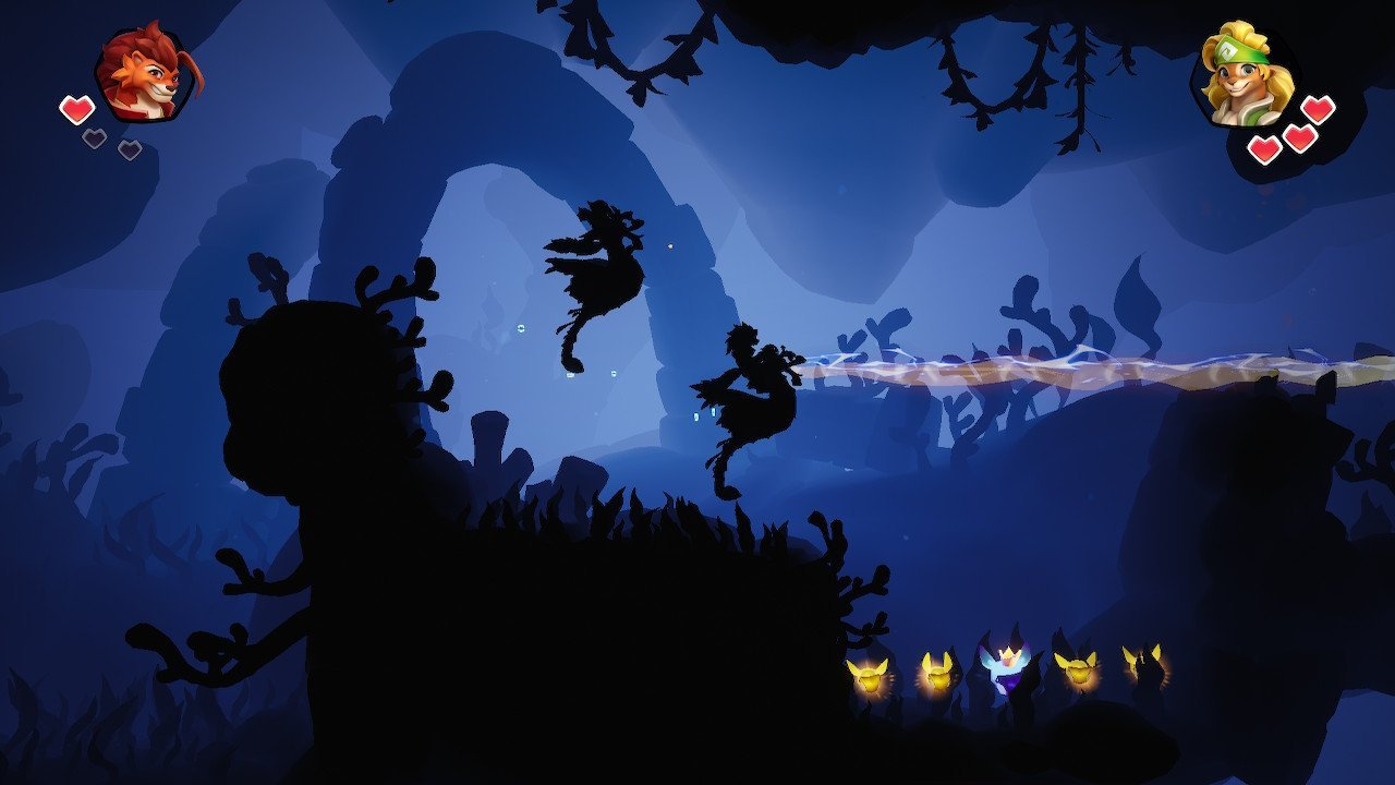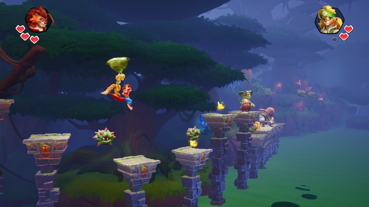 Une fois que votre coéquipier perd ses 3 cœurs, il flottera dans les airs jusqu’à ce que vous le délivriez. Tachez de ne pas mourir avant sa délivrance. Comme les vies sont infinies, les résurrections aussi ! Malgré tout, le jeu n’est pas pour autant facile et propose un joli challenge.