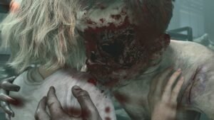 Vous l’avez compris, les zombies sont plus humains que jamais et assez rusés. Verdict, Il ne sera pas rare qu’ils bloquent un passage, vous obligeant à combattre alors qu’il ne vous reste plus beaucoup de munitions… Car oui, le gameplay de Grace est à l’ancienne : il faut chercher les balles dans les tiroirs, les vases, ou bien en fabriquer, et il peut en manquer ! Certes, on peut combattre avec un couteau de fortune, mais une fois planté sur un zombie, on ne pourra plus l’utiliser. Quant aux armes, si elles seront diversifiées au fil de l’aventure, elles resteront malgré tout assez limitées, et vous utiliserez dans la plupart des cas un pistolet avec Grace….qui devra fera face à des zombies de toutes sorte qu’il soit humains, de grandes tailles, voir connu de tous dans la licence.