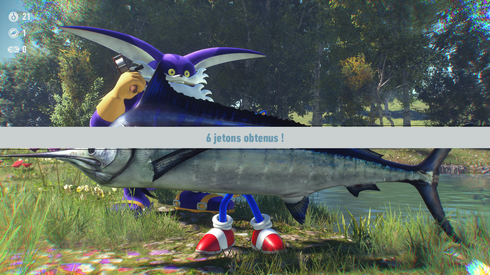Depuis le début du paragraphe, je vous cite toutes les nouveautés de Sonic Frontiers, néanmoins il est difficile de toutes les lister, tant celui-ci est différent des autres opus. Mais vous l’avez compris, le jeu se scinde en plusieurs parties avec un Sonic en open World, un Sonic classique via les portails, des énigmes et des mini-jeux, mais également des coffres à trouver et bien sur les chaos émeraudes qui permettront de pouvoir utiliser Super Sonic… Mais avant de récupérer l’ensemble des chaos émeraudes, il va falloir fouiller, explorer les lieux, ouvrir les portails du cyberespace, récupérer des clés, trouver des coffres, mais également trouver des clins d’œil du passé comme Big qui vous invitera à la pêche.
