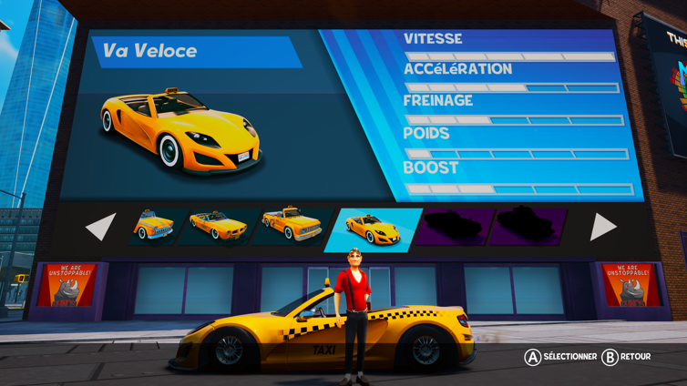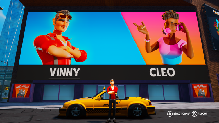 On sélectionne le mode arcade et l’on choisi entre deux chauffeurs de voiture, une femme nommée Cléo et un homme nommé Vinny, puis on sélectionne la seule voiture disponible. On démarre et le jeu semble plaisant au premier abord avant d’entendre une musique techno totalement insipide et quelques soucis d’affichages.