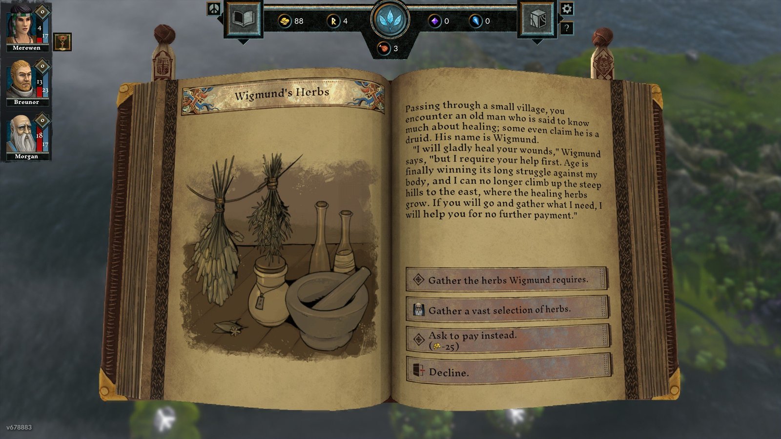 Tout d’abord, The Hand of Merlin nous place à la tête d’un compagnie de mercenaires chargés d’emporter le Saint Graal depuis la Terre d’Albion jusqu’à Jerusalem. Après l’échec du légendaire Arthur, nous devenons ainsi peu ou prou le dernier espoir de l’humanité. Sur leur chemin, nos héros n’auront de cesse de devoir composer avec différents évènements qui ne manqueront pas de surgir pour compliquer la progression vers le terre sainte. Parmi ceux-ci, les nombreux affrontements qui nous opposent aux abominations tentant de précipiter l’apocalypse apporteront leur lot de sueurs froides. Fort heureusement nous serons guidés par la main experte du grand Merlin, rescapé de la lutte contre les forces du mal. Nous aurons également le plaisir de croiser la route de figures emblématiques des légendes arthuriennes.