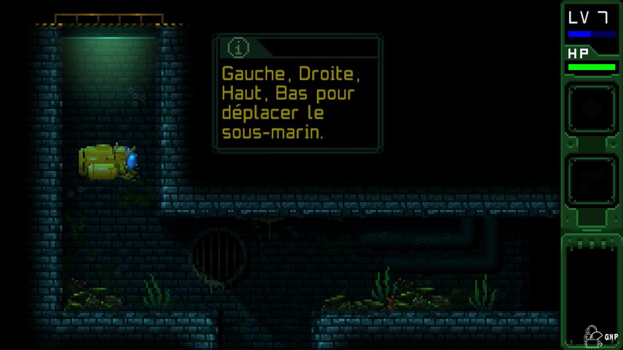 La prise en main est immédiate et les tableaux s’enchainent au fil de votre progression. Toutefois, s’habituer à la rigidité du gameplay demande de l’assiduité. (Le tir se fait dans 2 directions seulement par exemple). Si l’aventure peut se montrer parfois ardue, notamment lors des combats contre le boss, rien n’est insurmontable. Vous récupérerez vite un talkie walkie qui vous permettra de discuter avec certains protagonistes. Ceux-ci peuvent parfois se montrer de bons conseils et réservent surtout quelques bons moments humoristiques. C’est là que l’on découvre le point fort du jeu ; Une narration exemplaire qui contribue à notre désir de triompher des dangers afin de connaitre le fin mot de toute cette histoire.